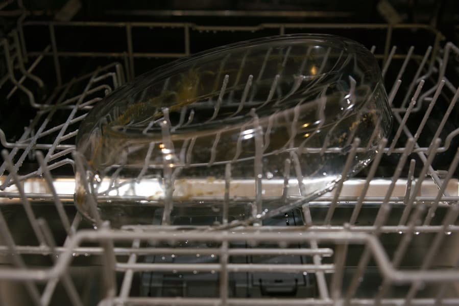 Здравый смысл подсказывал замочить форму на пару часов, но нам нельзя — у нас задание всё усложнить. Так что поместили как есть в середину корзины и включили посудомойку на программе для интенсивной мойки (Р4).