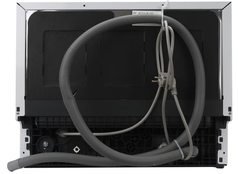 Эта симпатичная небольшая посудомойка легко поместится на стандартную кухонную столешницу и не займет много места. Вместимость при этом у прибора вполне приличная — целых 6 комплектов посуды. Во всяком случае, так обещает производитель. Модель оснащена 5 автопрограммами с возможностью частичной загрузки, таймером с отложенным стартом, функциями блокировки, паузы и запоминания, а также индикаторами соли и ополаскивателя. Похоже, что несмотря на компактность это полноценный прибор для мытья посуды со всеми необходимыми опциями. Мы проведем ряд стандартных тестов и выясним, насколько хорошо он справляется с разного рода загрязнениями и насколько удобен в использовании.