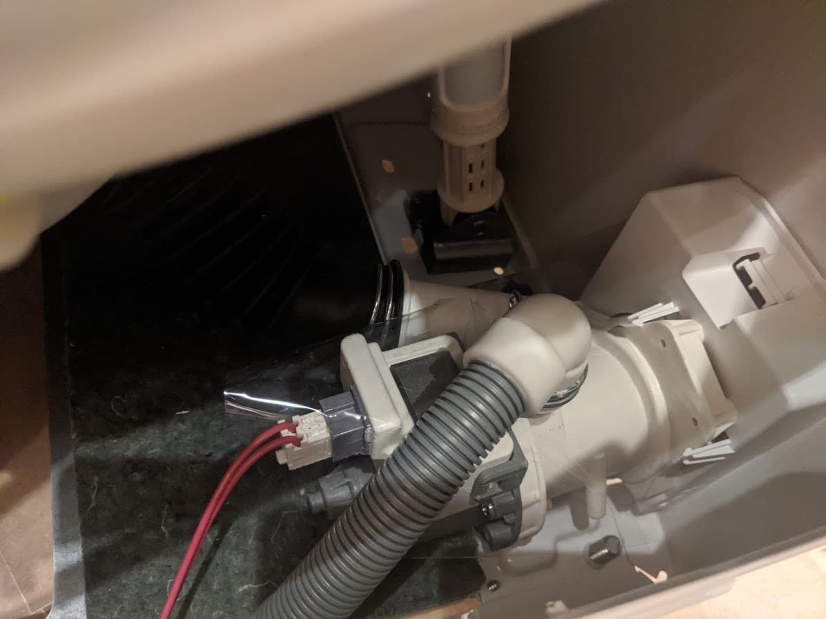 Периодичность очистки сливного фильтра производителем не регламентируется. Для этой процедуры следует открыть лючок на передней панели устройства (заметим, что открывается он с некоторым трудом, и приходится применять твердый тонкий предмет: нож, отвертку или черенок чайной ложки), отвинтить пробку (рекомендуется подложить под нее кусок впитывающей воду ткани, чтобы сохранить пол сухим), вынуть и промыть фильтр.