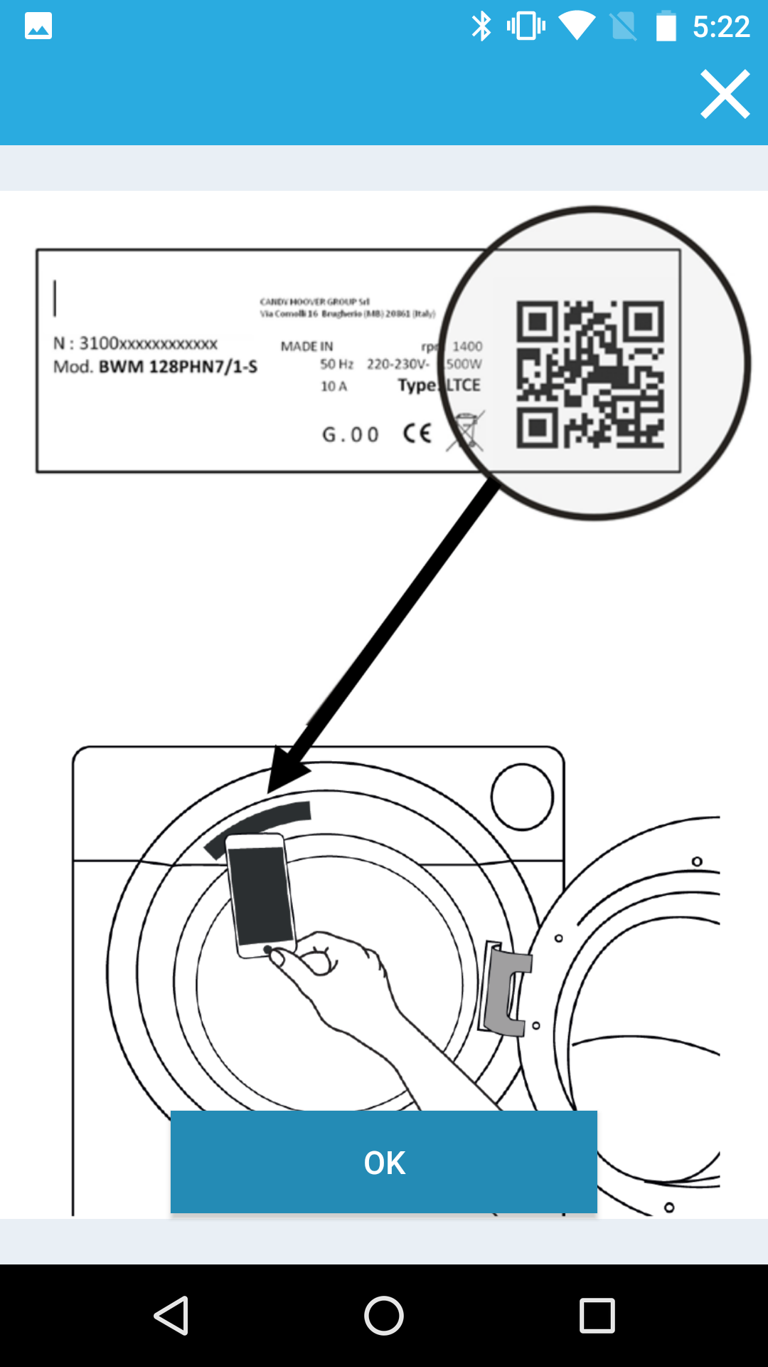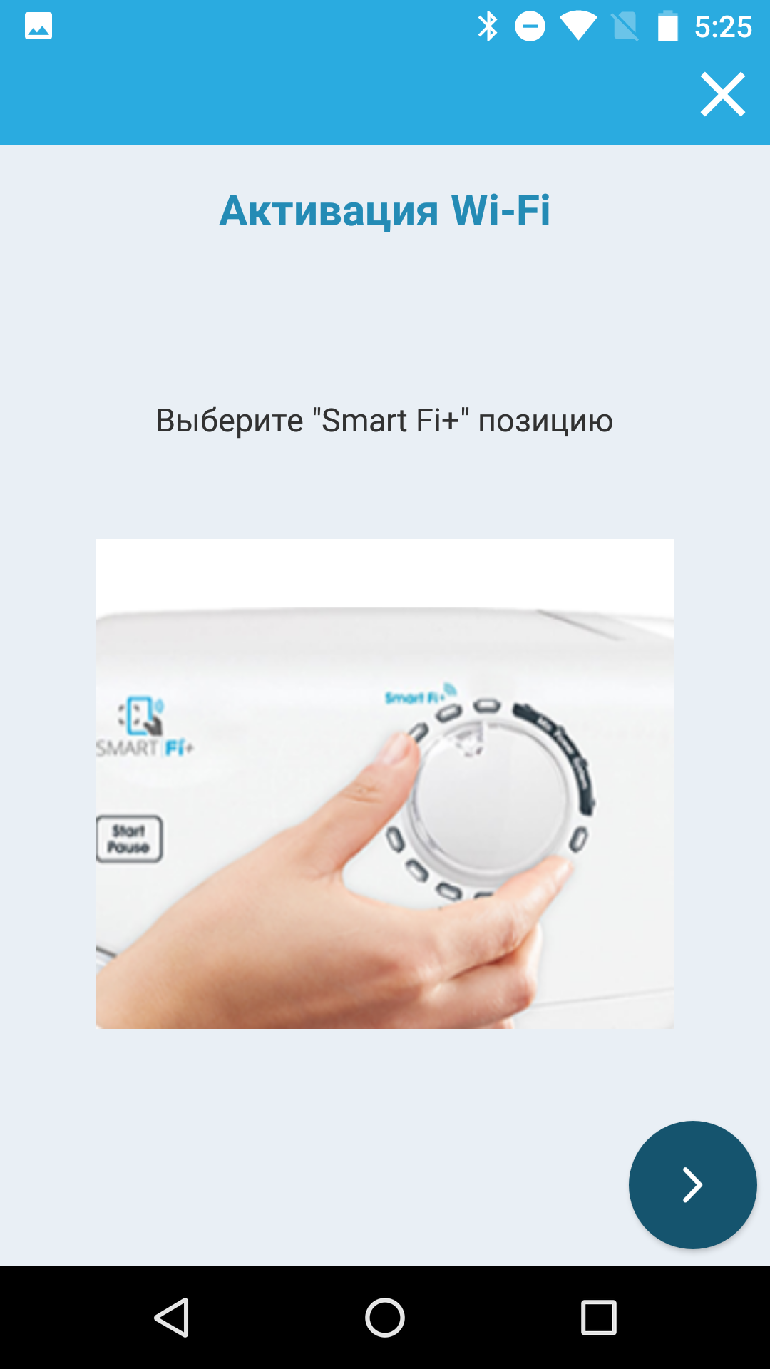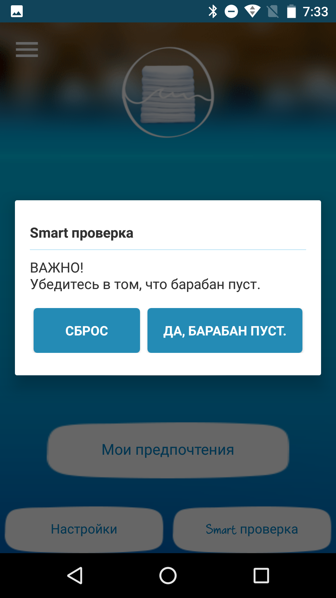 На этом этапе мы столкнулись с проблемой. При включении функции Wi-Fi стиральная машина создает собственную сеть с SSID «WIFIWASHMACHINE-<случайное буквосочетание>», и приложение должно подключиться к ней для настройки прибора. Однако при попытке подключения к свежесозданной сетке программа требует доступа к интернету, которого у стиральной машины еще нет. Такую коллизию разработчики почему-то не предусмотрели, и приложение в этот момент аварийно завершается.