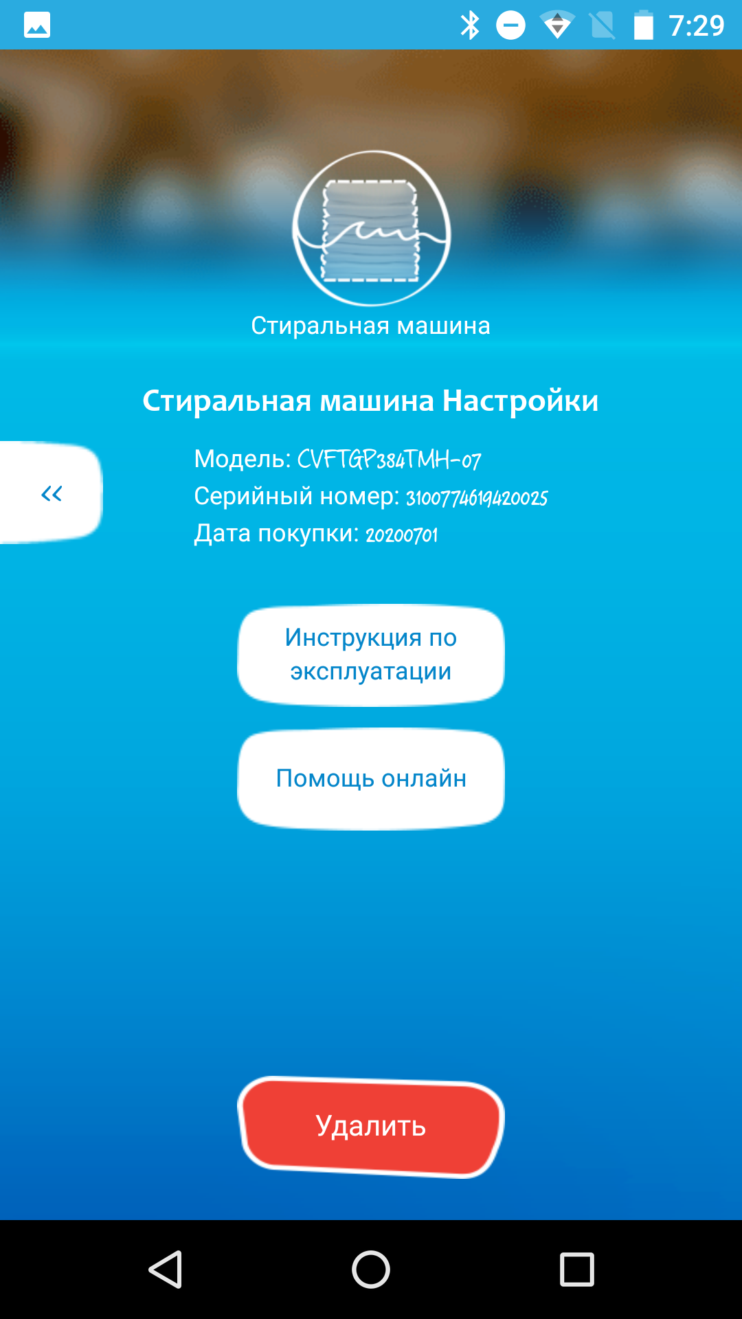 После этого мы убеждаемся, что никаких активных предложений по изделию в настоящий момент нет, и видим, что стиральная машина появилась в списке наших приборов.
