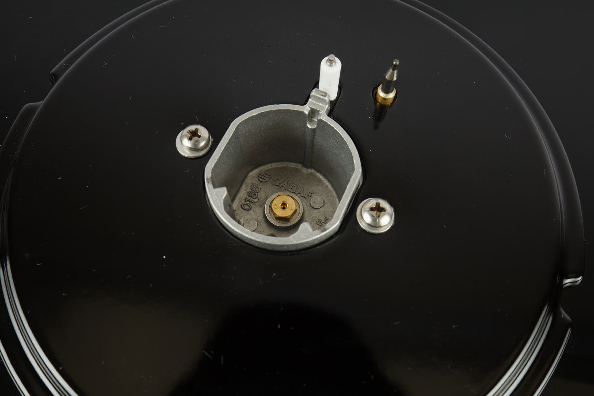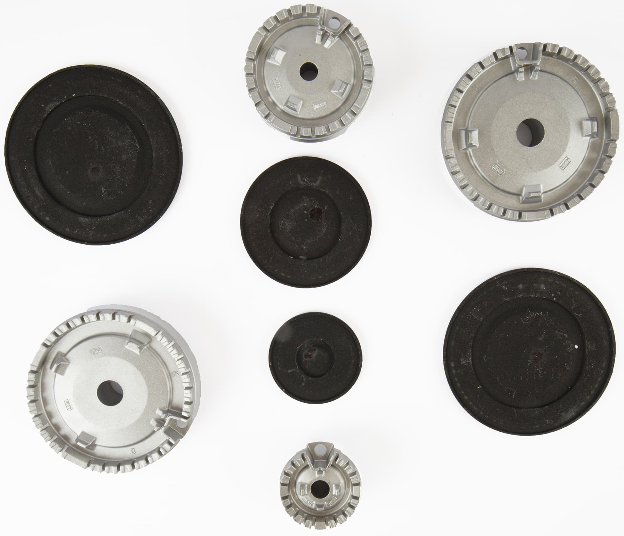 Каждая из конфорок оснащена газ-контролем и электроподжигом. Две большие конфорки расположены по бокам, средняя и вспомогательная — в центре. Маленькая конфорка на 1 кВт расположена в 11 см от центра до ручек, но ее мощности явно не хватит, чтобы их перегреть.