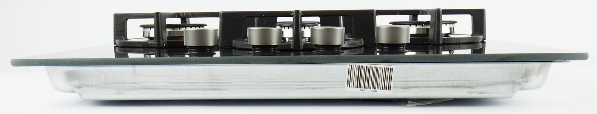 На панели из закаленного стекла для защиты от подтекания жидкости внутрь конфорок предусмотрены встроенные металлические подкладки. Внешне они практически не отличаются от панели — цвет подобран идеально.