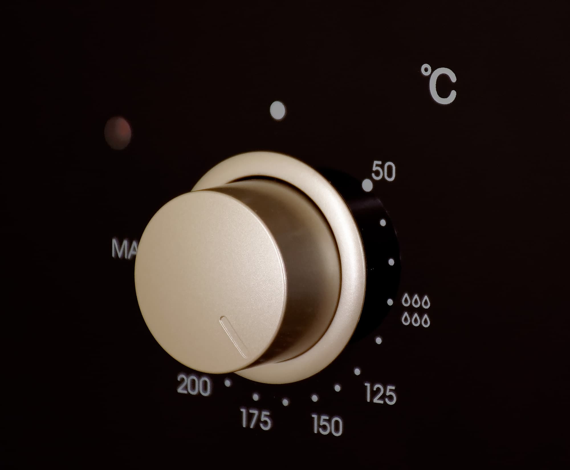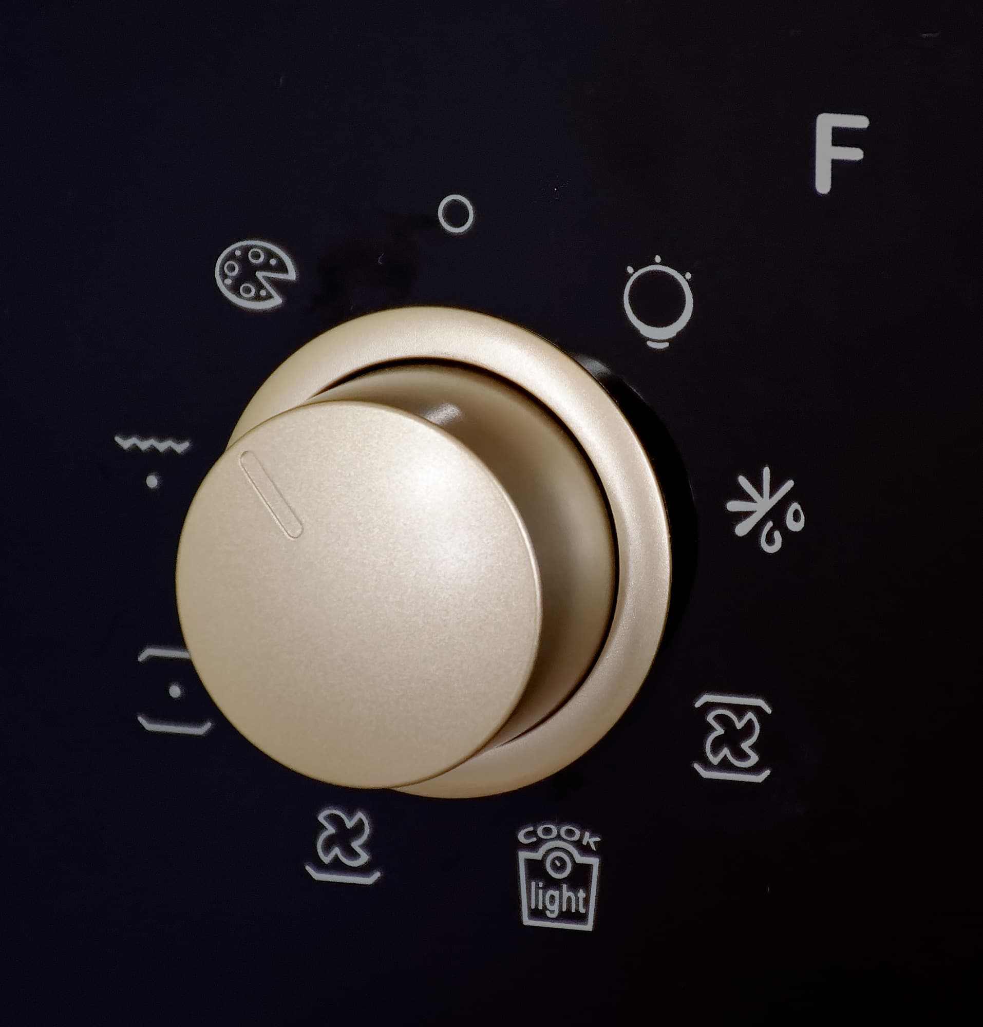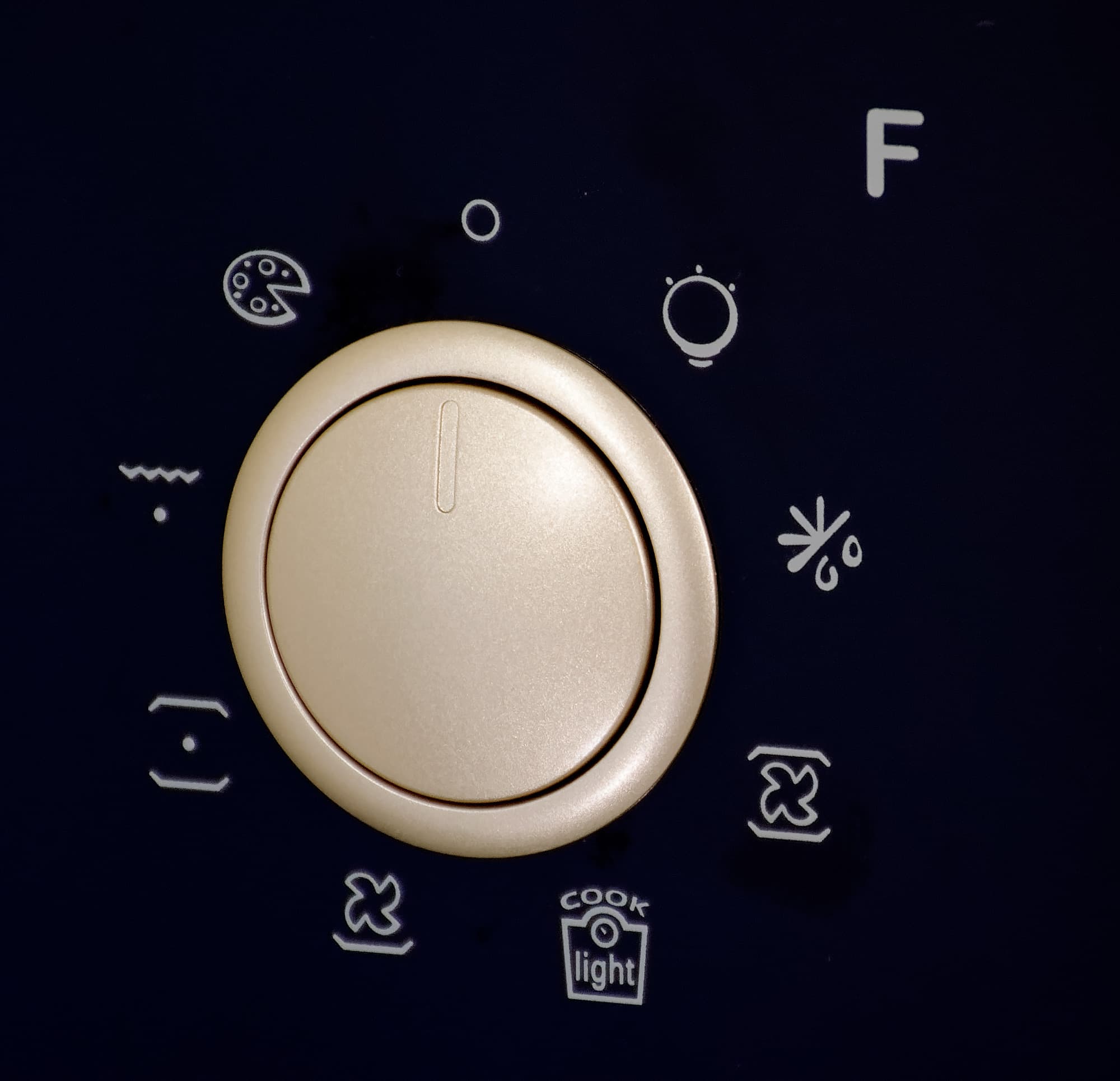 Основы управления интуитивно понятны с первого взгляда. Правая поворотная ручка отвечает за выбор режима, левой выставляется температура нагрева. Крутится все легко и тактильно приятно. Ручки можно утапливать в поверхность духовки, чтобы они не торчали.
