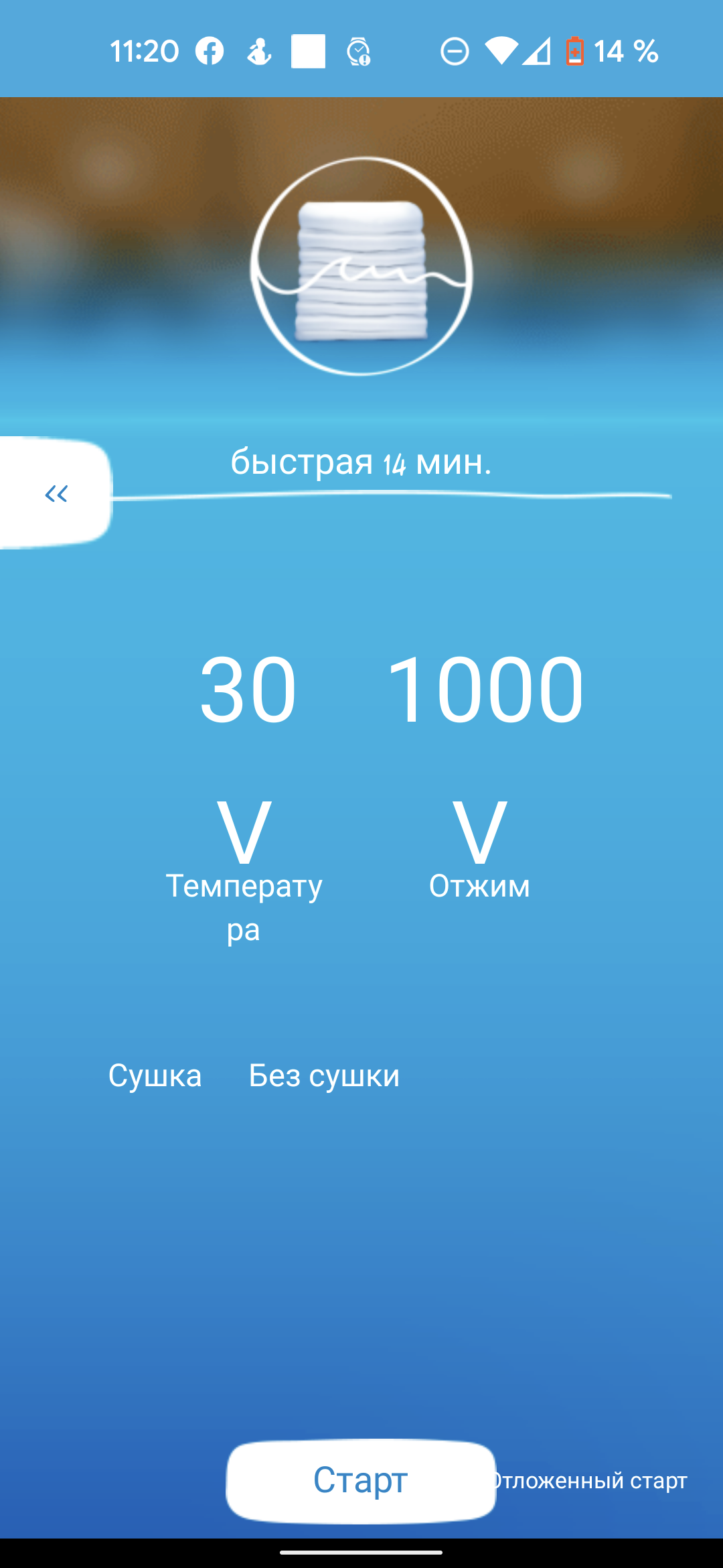 - Быстрая (14/30/44 минуты) — для стирки небольших загрузок не очень грязного белья