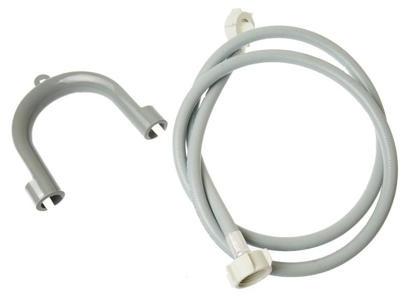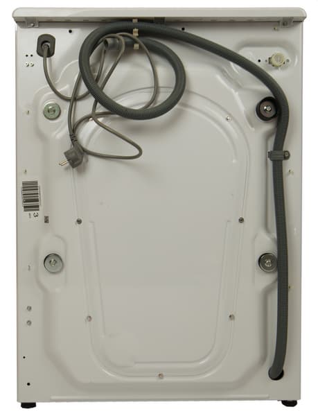 Сливной шланг уже установлен на машину и закреплен пластиковыми хомутами. Розетка для заливного шланга расположена в верхнем правом углу задней панели. Эта модель подключается только к холодной воде.