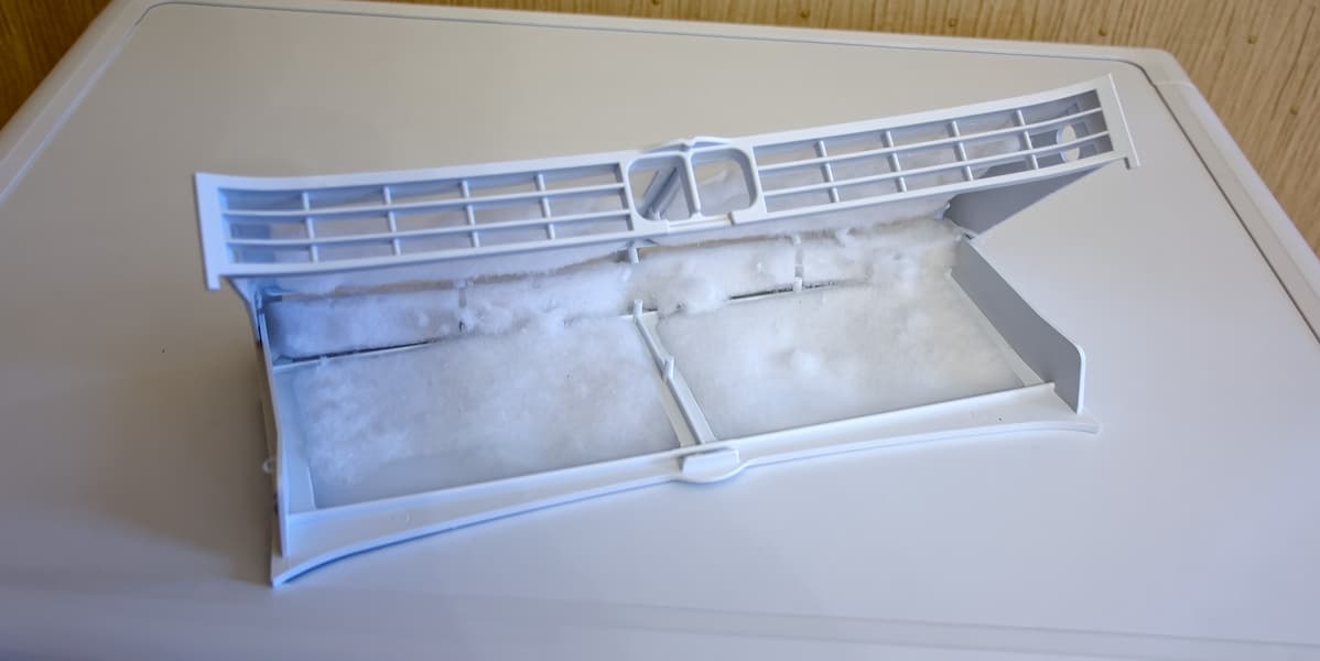 Фильтр первичной очистки находится на нижней грани загрузочного отверстия, его можно вынуть, просто потянув вверх. Вот как он выглядел после сушки 10 махровых полотенец.