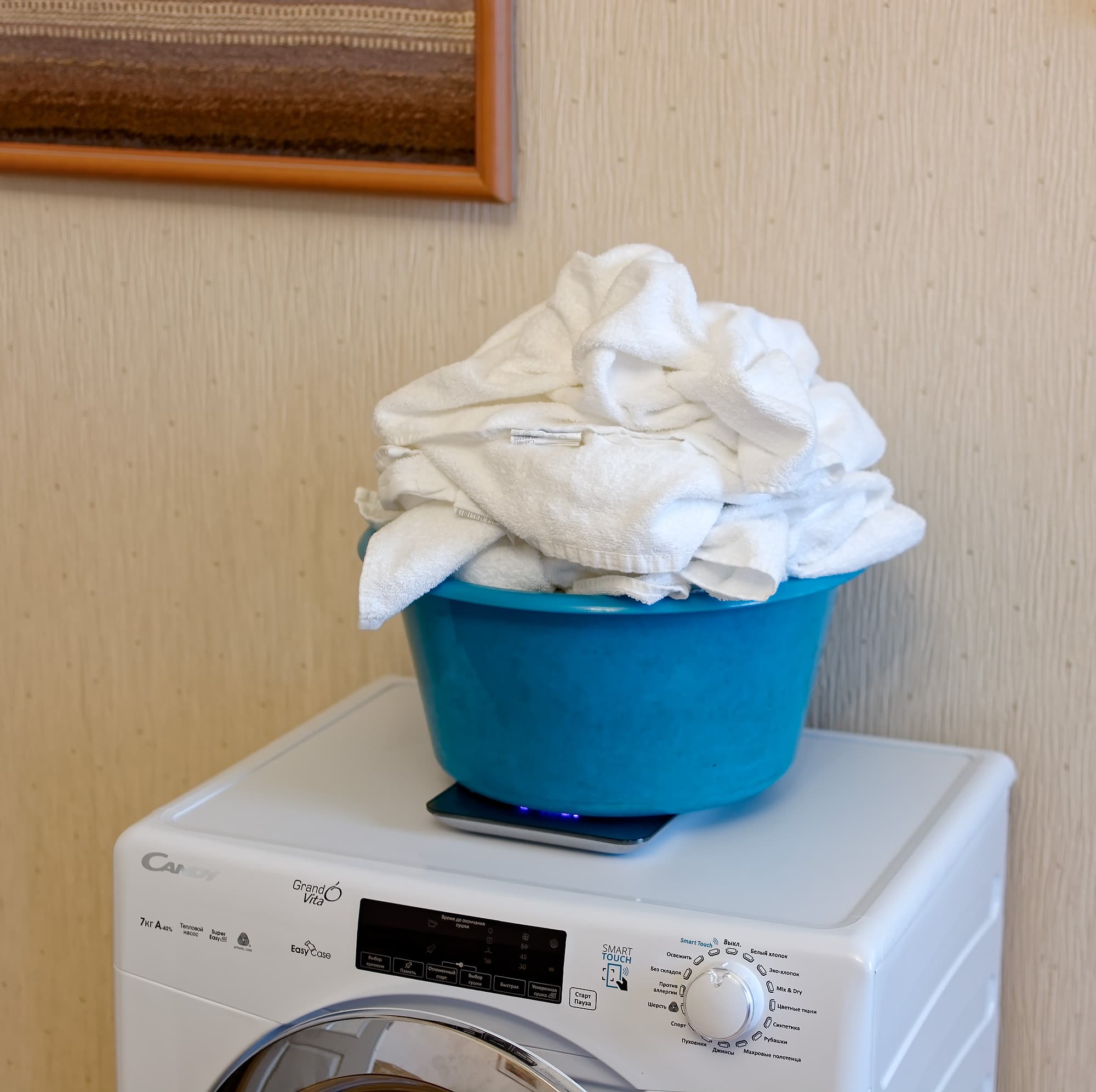 Для усложнения задачи белье было взято «с переподвывертом» — сатиновое, причем хлопковое. По опыту владельцев, по отношению к стирке такое сочетание отличается довольно капризным характером: склонно к заминанию, плохо прополаскивается и плохо отжимается. Тем не менее, полный комплект постельного белья был прополоскан, отжат на 1000 об/мин и отправлен в сушку. Предварительное взвешивание сразу же показало, что задачка сушилке предстоит серьезная...