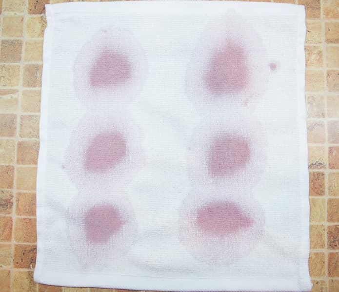Результат оказался существенно лучше: пятна от красного вина стали заметно светлее, чем в предыдущем тесте. Пятен от соевого соуса, кетчупа и какао на трех других полотенцах не обнаружилось.