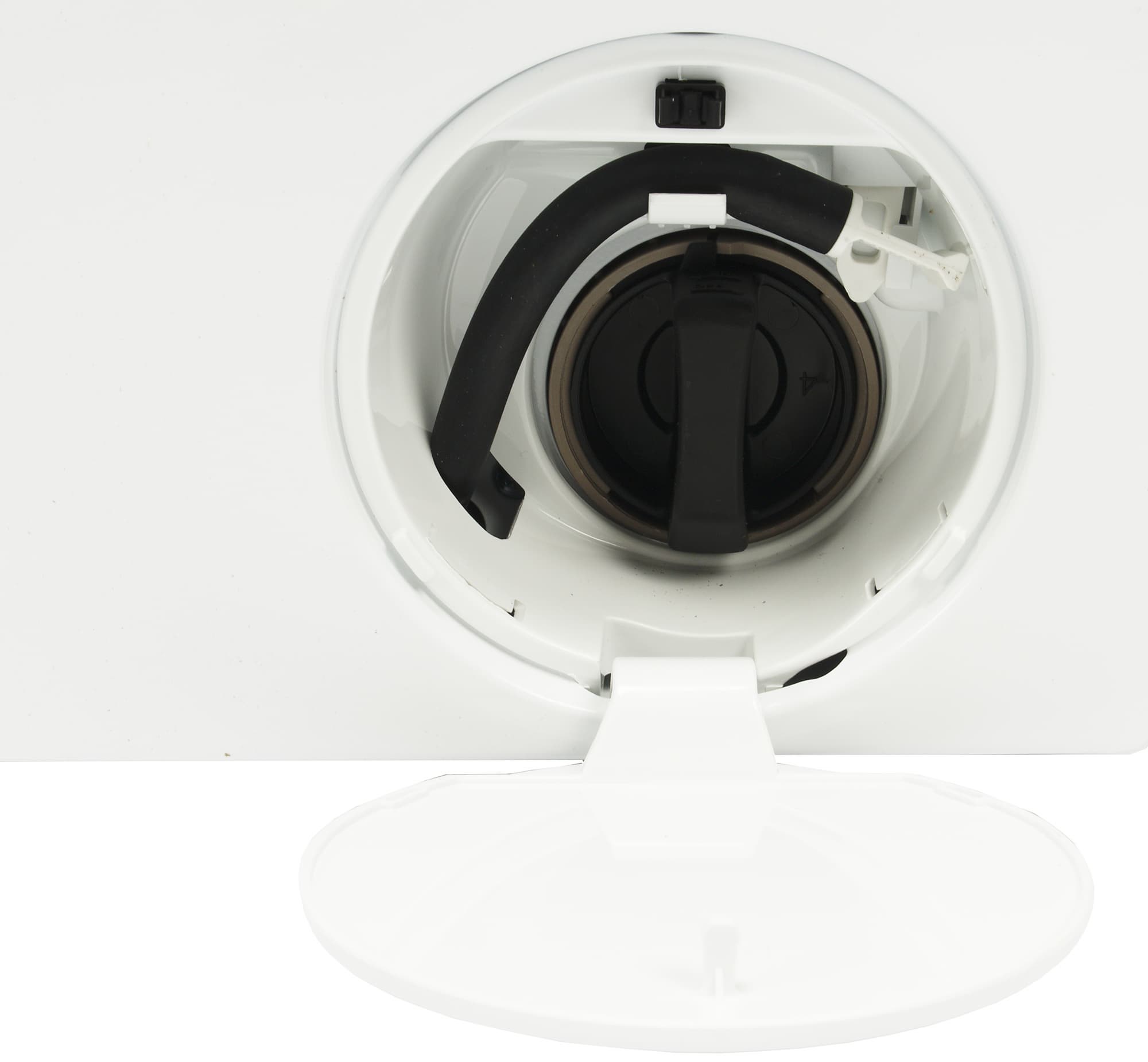 В нижнем правом углу передней панели под крышкой находится фильтр с патрубком аварийного слива.