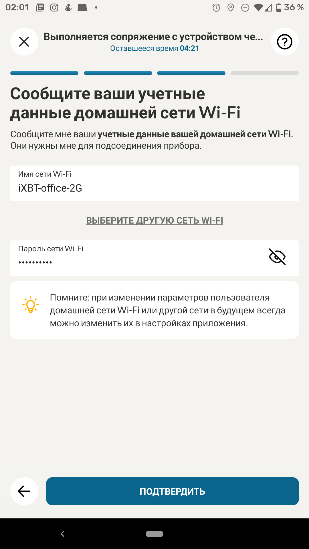 Во время цикла, запущенного со смартфона, на дисплее, помимо ожидаемой продолжительности, видна дополнительная техническая информация: по экрану пробегает строка из нескольких трехсимвольных групп: «44F 430 43D 442 43B» и т. п. Мы предполагаем, что это отладочная информация, не выключенная в прошивке нашего экземпляра.