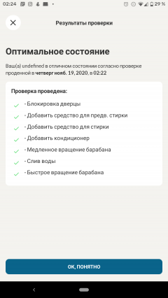 Приложение для управления стиральной машиной понравилось нам неплохим набором дополнительных программ стирки, расширяющим функциональность устройства, и хорошо работающей системой уведомлений. Хотя оно имеет ряд недоработок, мы полагаем их легкоустранимыми и надеемся на то, что в следующих версиях ПО встреченные нами недочеты будут исправлены.