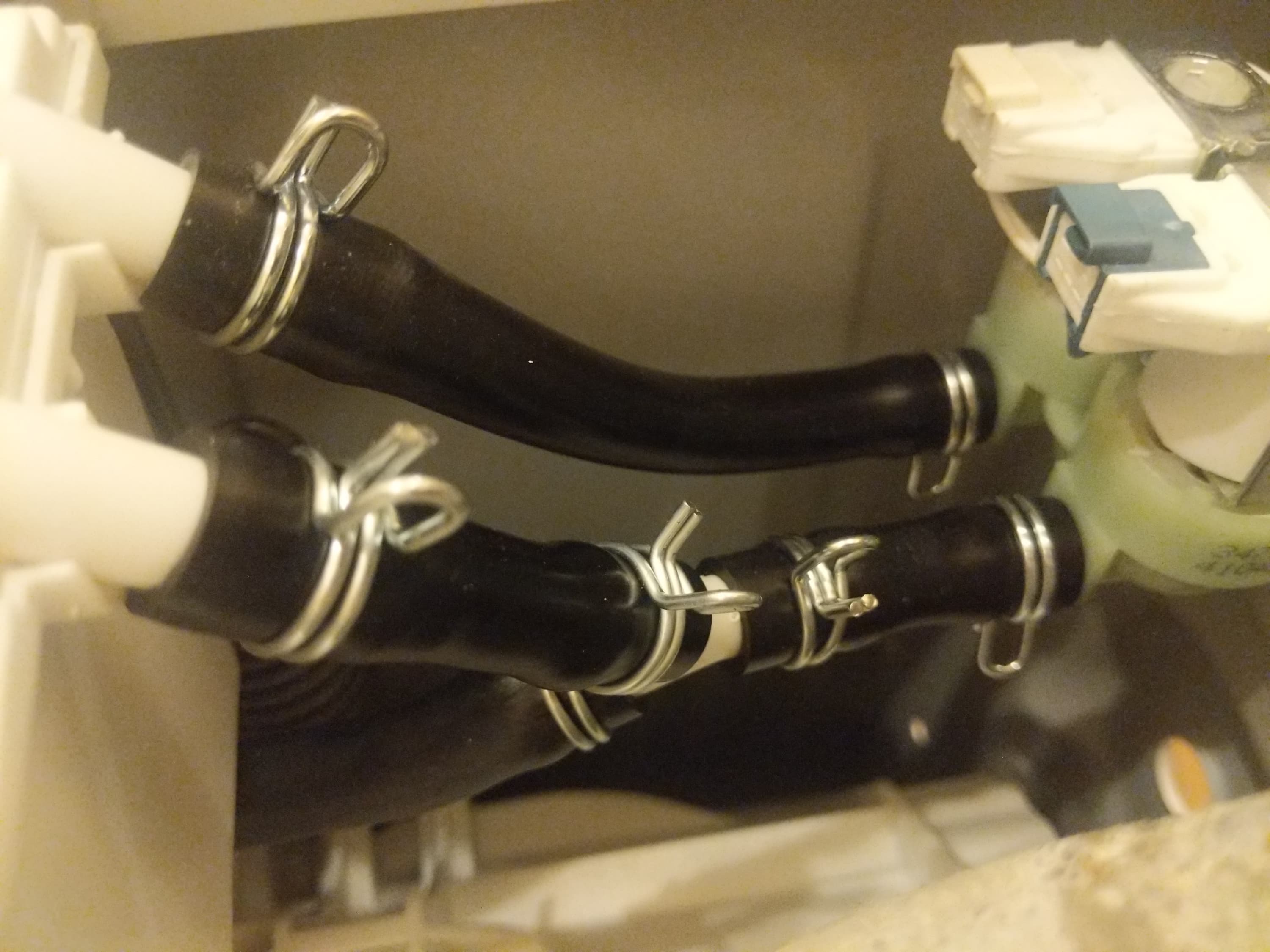 Шланг для подключения к водопроводу не снабжен клапаном аквастопа и имеет простейшую конструкцию.