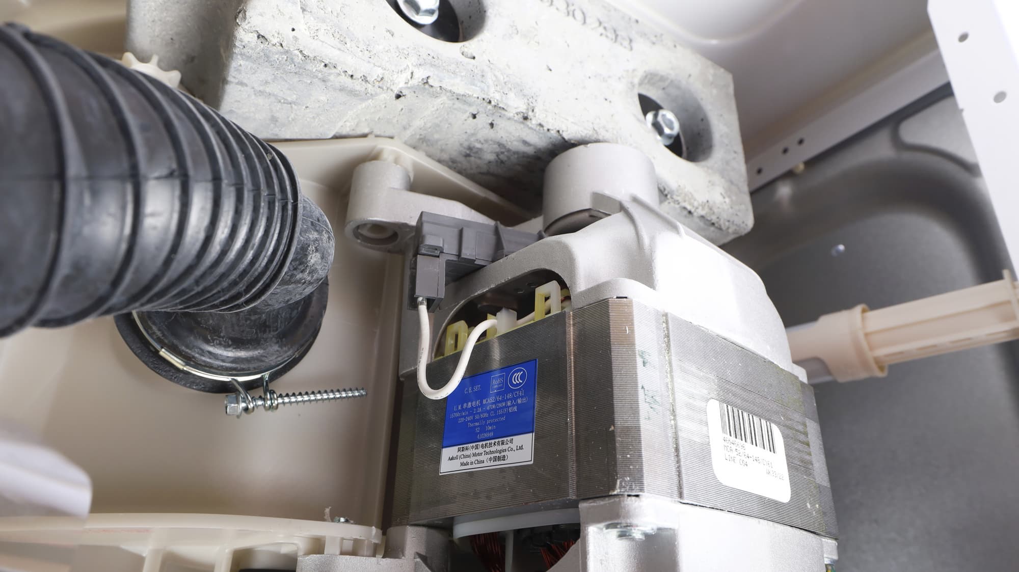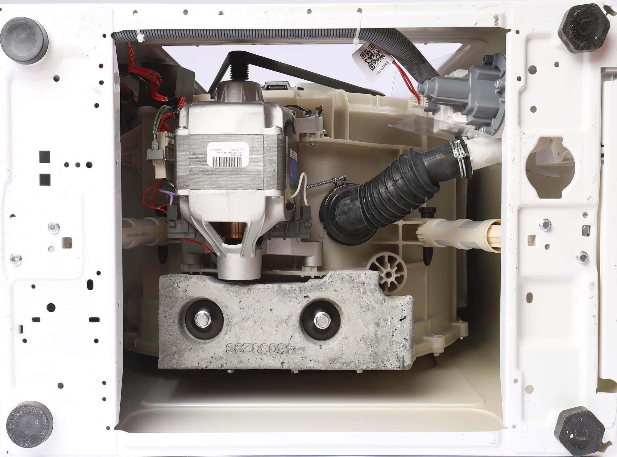 Как обычно, мы произвели неполную разборку стиральной машины и заглянули внутрь, чтобы оценить расположение и исполнение основных компонентов.
