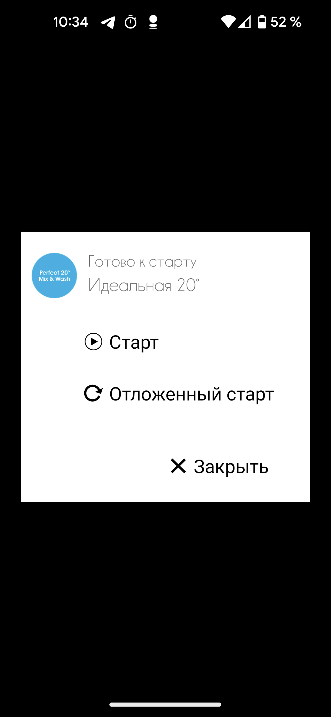 Кнопка «Старт/Пауза» в правом нижнем углу запускает или приостанавливает сценарий стирки.