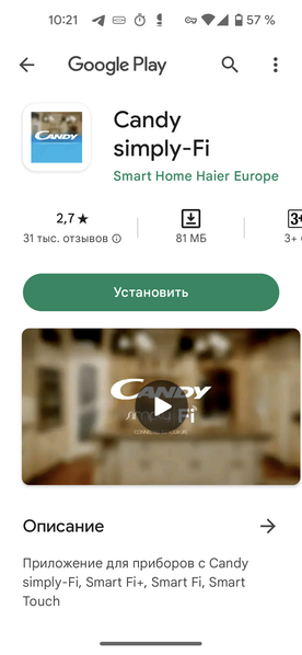 Для использования со стиральной машиной производитель предлагает уже знакомое нам приложение Candy simply-Fi.