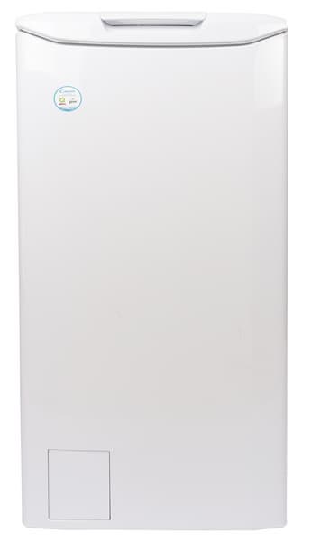 Внешний вид Candy Smart CST G283DM/1-07 делает ее похожей на большинство стиральных машин с вертикальной загрузкой: перед нами белый глянцевый параллелепипед с люком на верхней панели и органами управления рядом с ним.