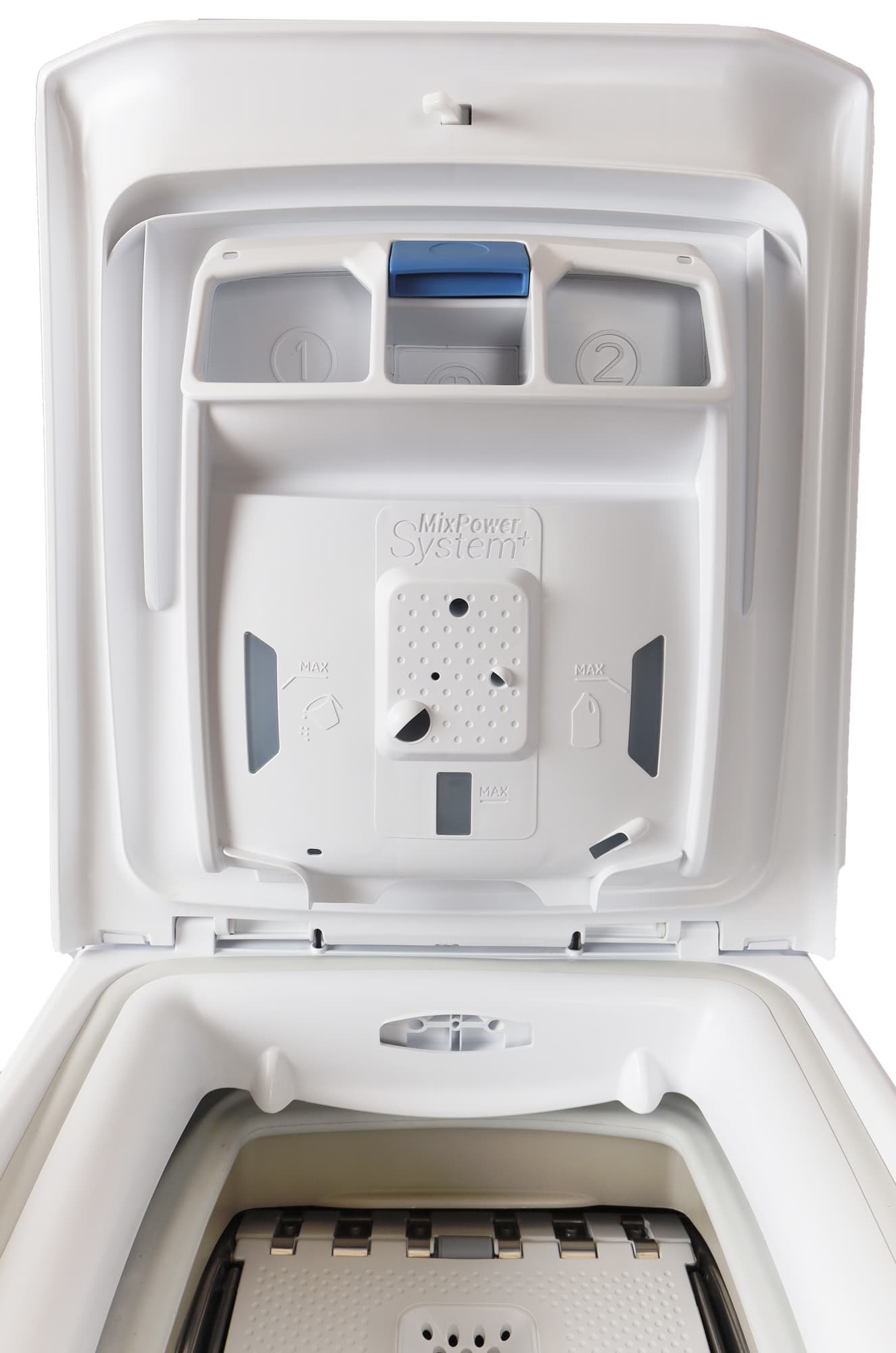 Первый шаг надо делать после каждой стирки — так советует производитель. По крайней мере, надо посмотреть в кювету и определить, есть ли в ней остатки порошка или геля. Если нет, можно ее не снимать, в противном же случае лучше помыть, чтобы избежать блокировки потока воды от дозатора к барабану. Емкость можно снять, нажав на кнопку в верхней ее части, а потом поставить на место.