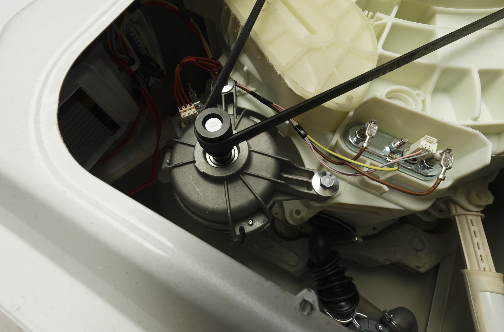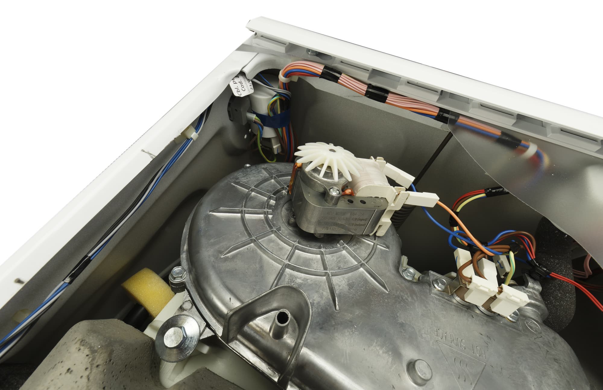 По сложившейся традиции мы производим неполную разборку стиральной машины, снимая верхнюю крышку из ДСП и заднюю панель, и фотографируем ее основные узлы, не комментируя увиденное.