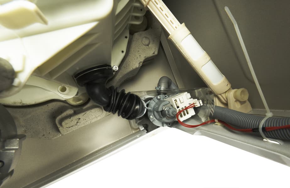 В правом нижнем углу передней панели — откидывающийся лючок, под которым скрывается пробка выпускного фильтра.