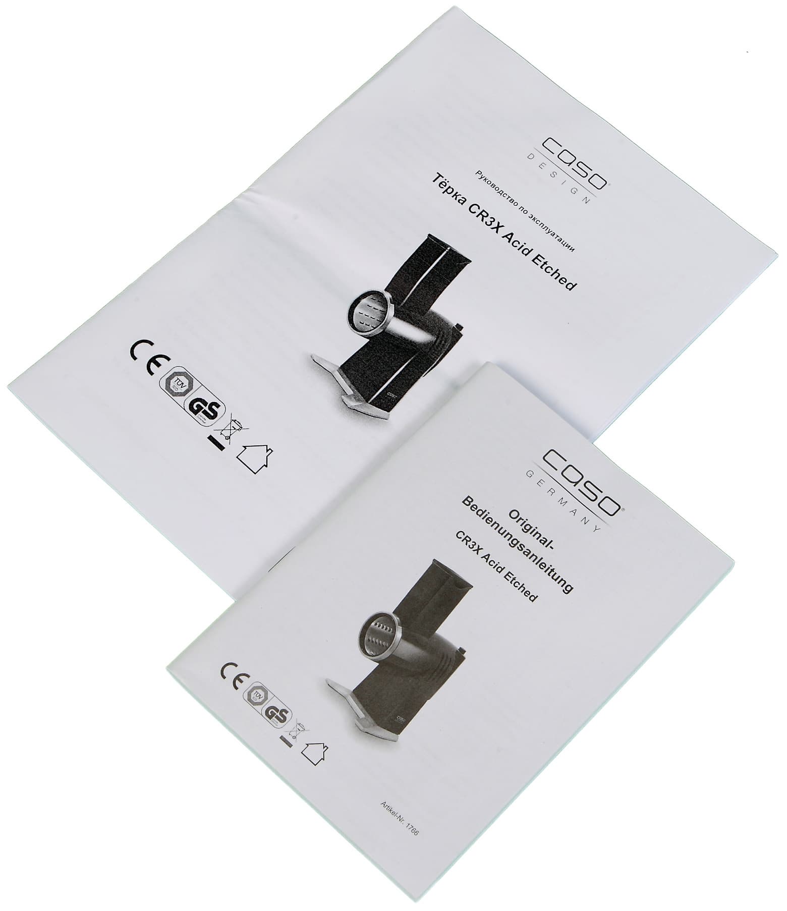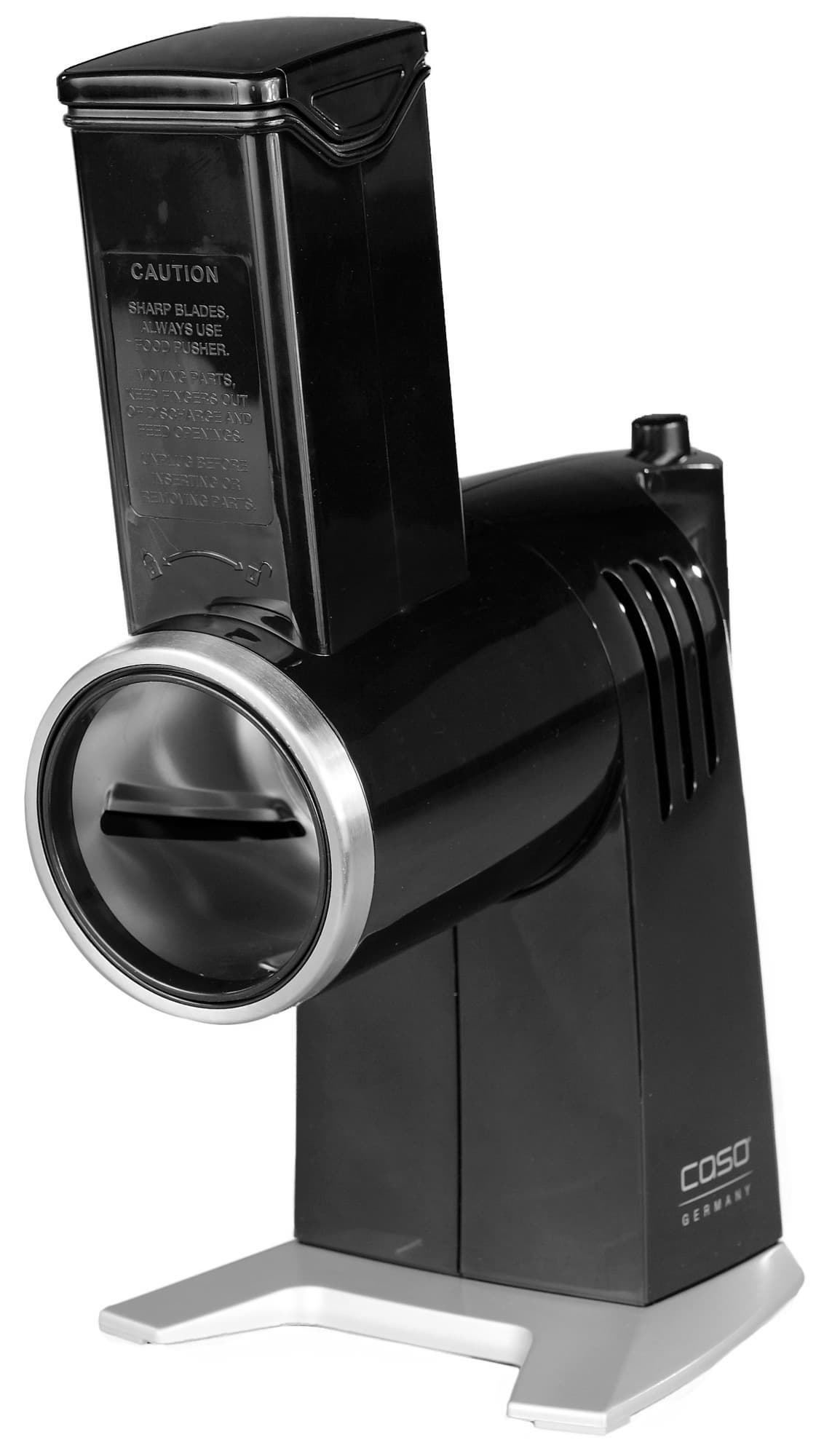 Отличительной особенностью Caso CR3X Acid Etched является слегка наклоненный раструб, из которого осуществляется подача измельченных продуктов. Таким образом натертые фрукты или овощи будут буквально сами попадать в подставленную тарелку или другую емкость. Высота такой емкости должна составлять не более 9,5 см, чего должно быть более чем достаточно.