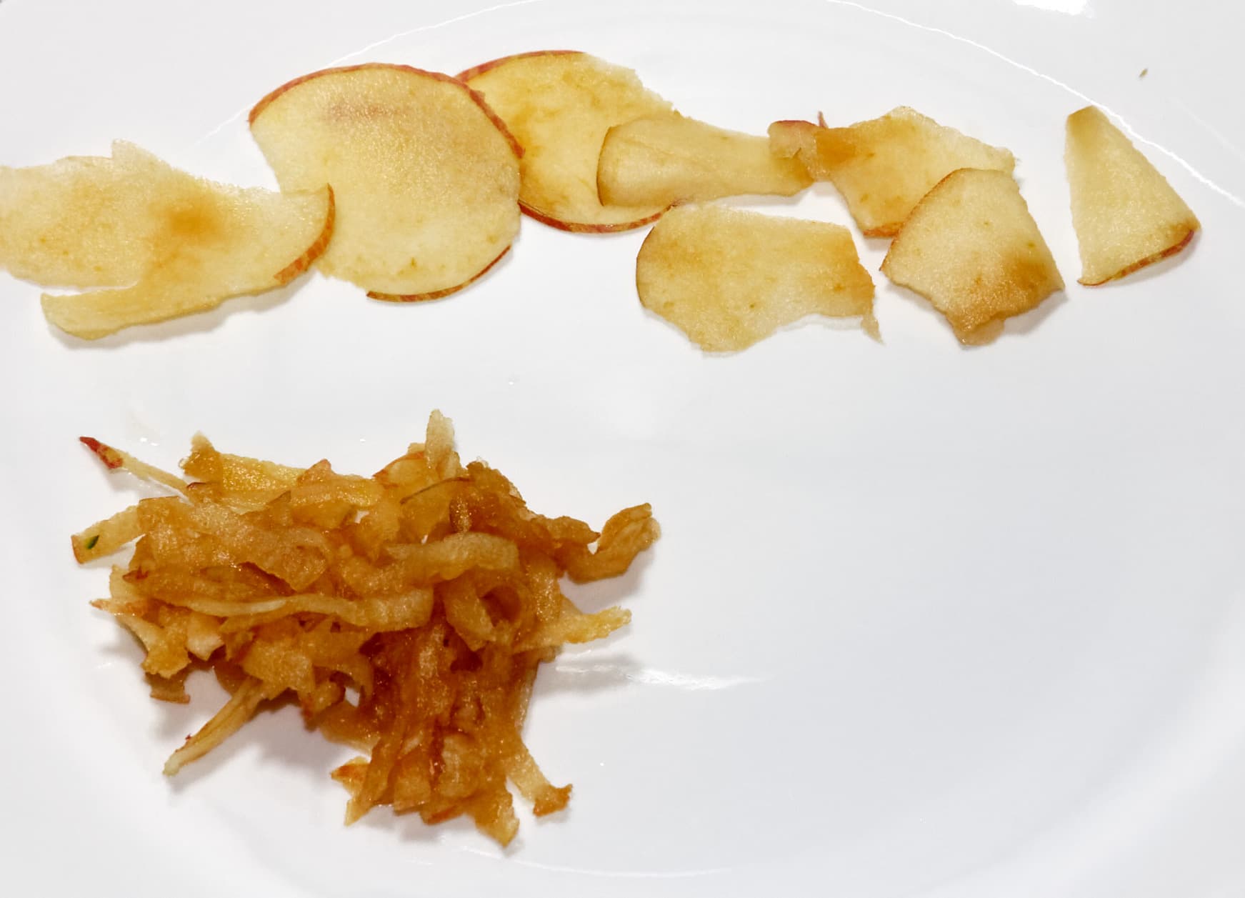 С яблоками, нарезанными на четвертинки, терка справилась посредственно: на самой мелкой терке из мультирезки просто потек яблочный сок. Сменив насадки на более крупные, мы смогли добиться приемлемого результата, однако количество отходов все равно оказалось довольно велико.