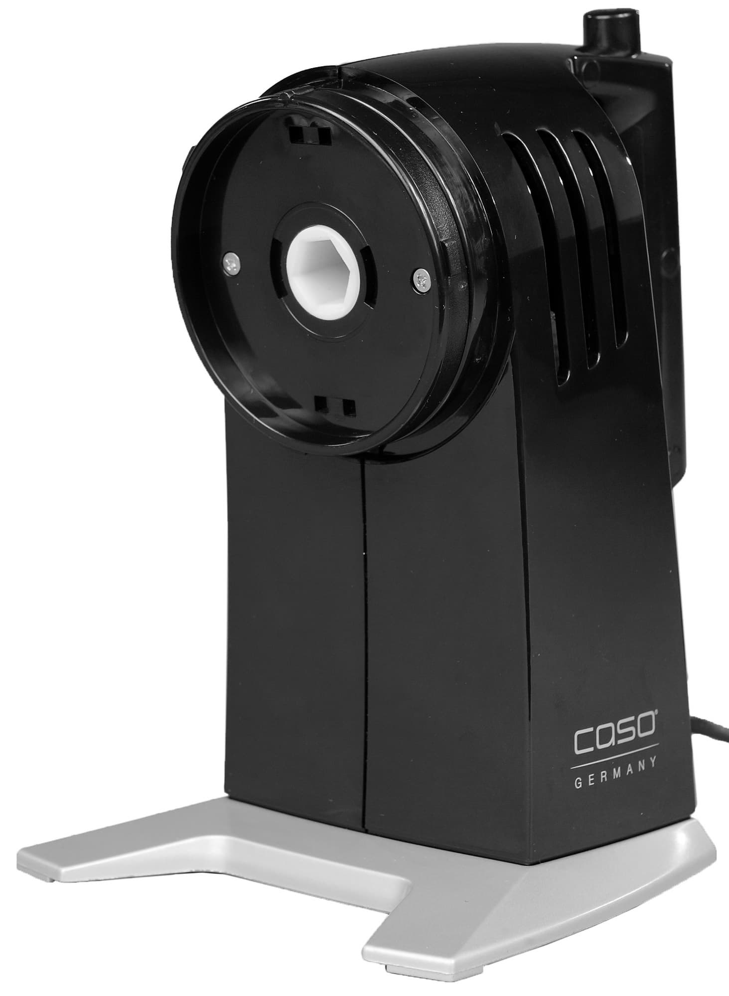 Моторный блок имеет пластиковую подставку, обеспечивающую дополнительную устойчивость прибора. Снизу и по бокам можно увидеть вентиляционные отверстия. Спереди расположен пластиковый байонет для установки насадок, сзади — ручка для переноски и ручной фиксации прибора в процессе использования, а также кнопка механическая включения/отключения. Сбоку нанесен логотип Caso.