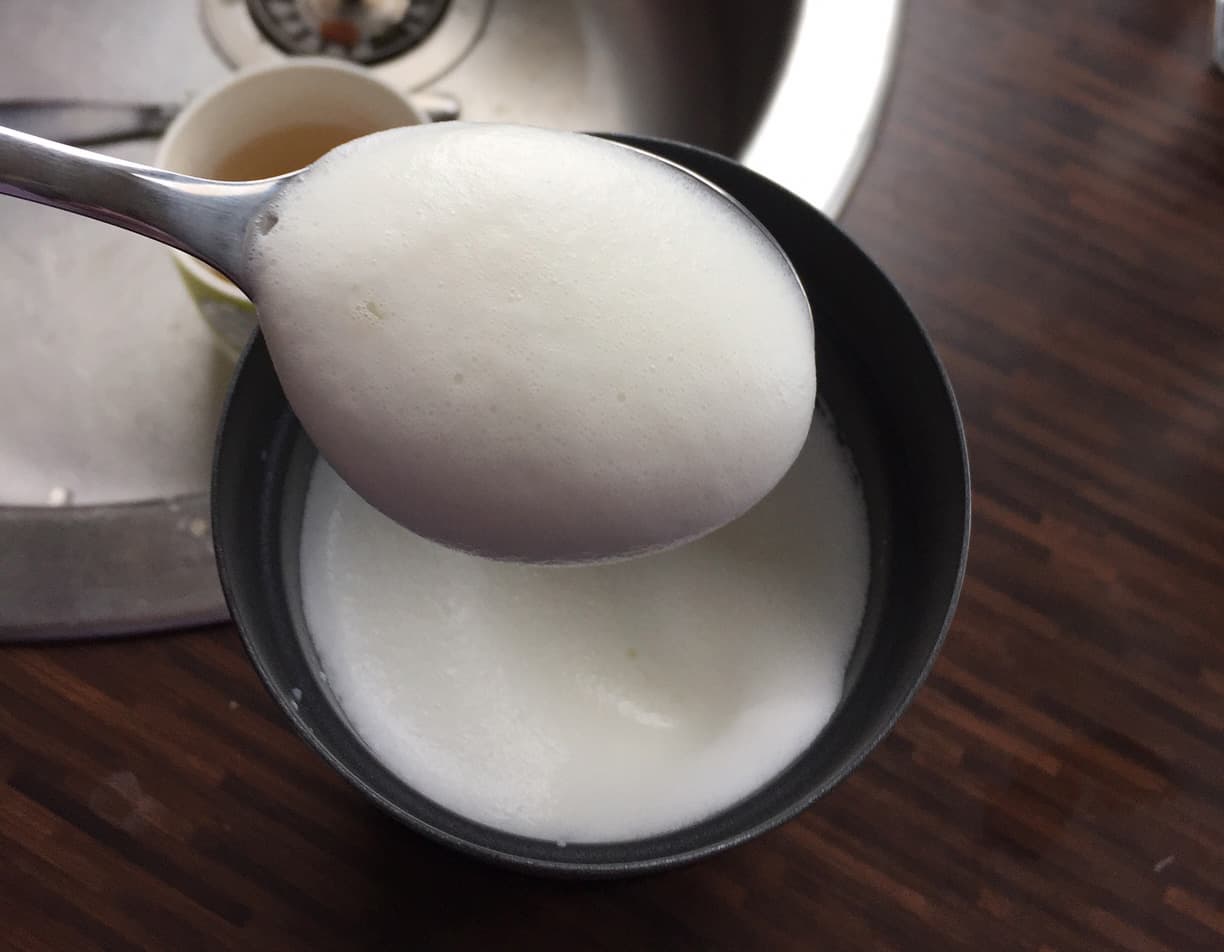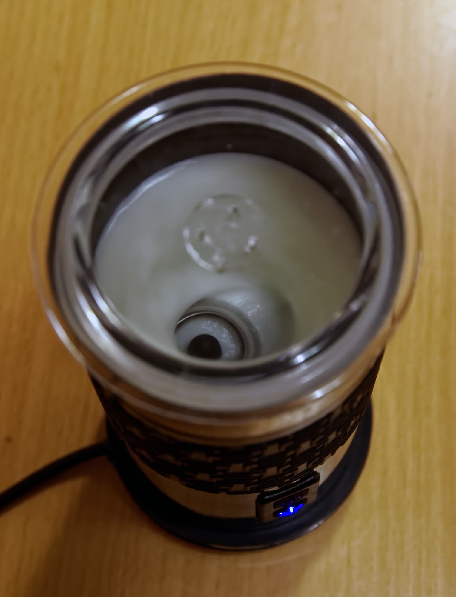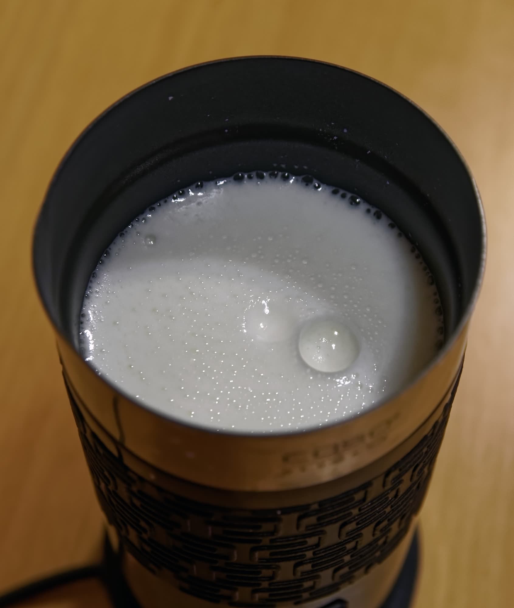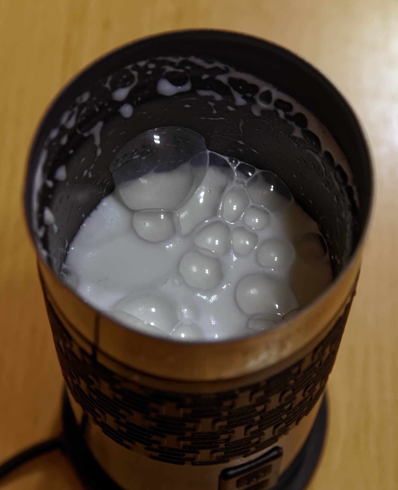 ...Которого не случилось. Вместо горячей пены мы увидели обычное молоко плюс несколько больших пузырей сверху.