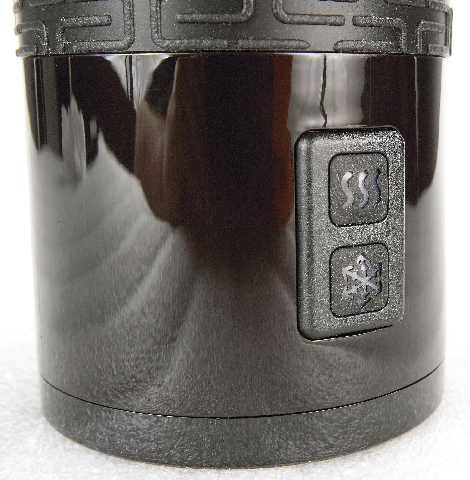 У прибора две кнопки: горячая пена и холодная пена. В зависимости от желаемого результата, пользователь нажимает либо верхнюю, либо нижнюю клавишу. В кнопки встроены фигурные световые индикаторы: красный в виде струек горячего пара на верхней кнопке и синий в виде снежинки на нижней. Во время работы индикаторы горят ровным светом, при отключении несколько раз мигают, затем гаснут. Кроме того, устройство может просто подогреть молоко. Для этого нужно венчик для взбивания заменить на венчик для подогрева.
