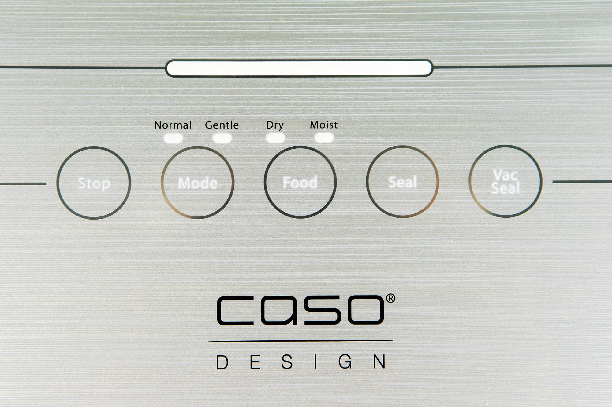 На этой панели расположен логотип Caso, пять сенсорных кнопок, имеющих встроенную подсветку, индикаторы выбора режима, а также большой горизонтальный индикатор работы. Единственное, что нас смутило: разные цвета подсветки. Индикаторы режимов и кнопки подсвечиваются белым цветом, а индикатор работы, имитирующий «прогресс бар» подсвечивается ярко синим цветом, который, на наш взгляд, совершенно неуместен в черно-сером дизайне прибора и выбивается из общего ряда. Впрочем, на этом наши претензии к внешнему виду устройства заканчиваются.