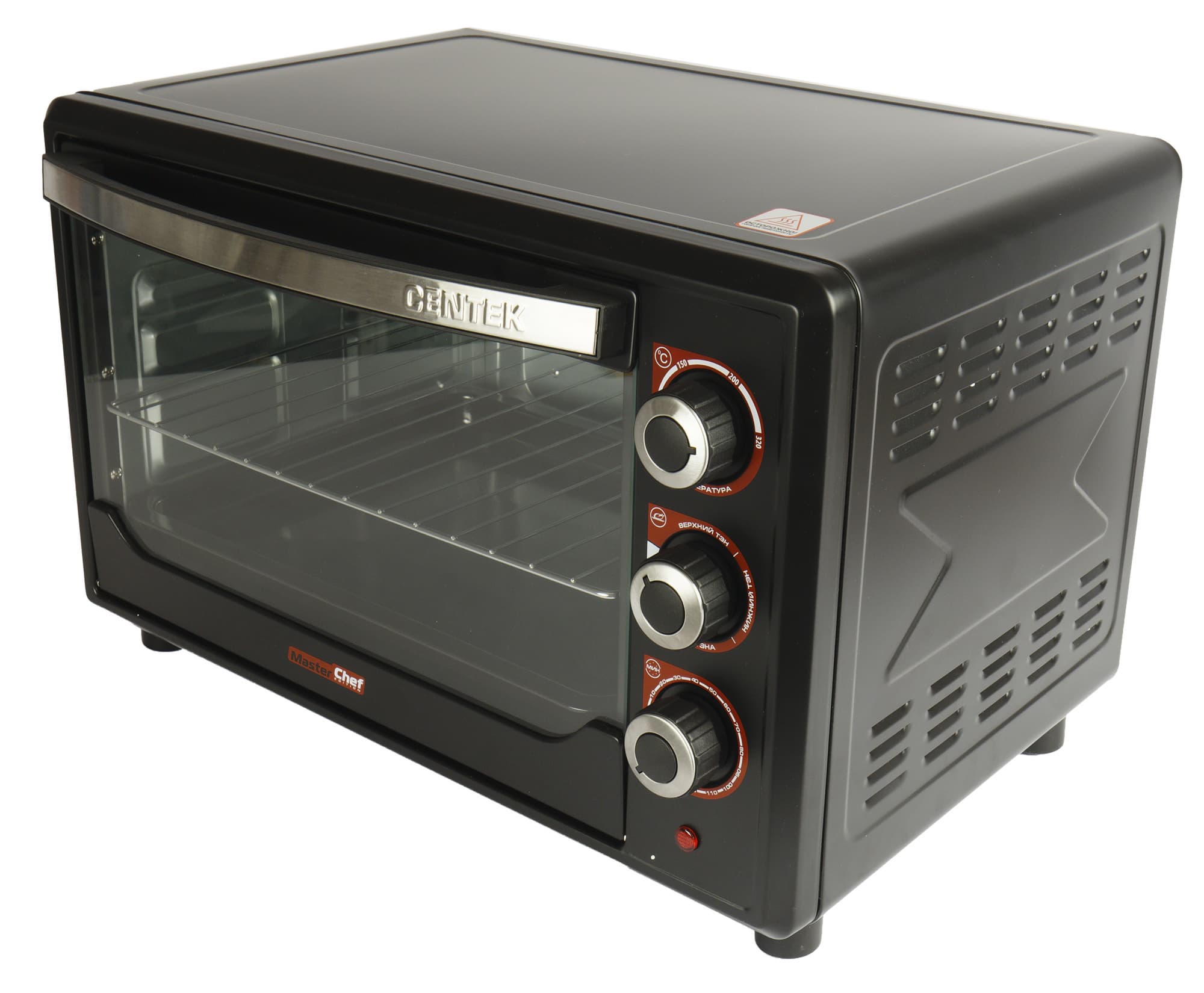 Мы распаковали шкаф, установили на место, на расстоянии не менее 10 сантиметров от стены и других приборов. Жарочный шкаф, как любое универсальное тепловое оборудование, сильно нагревается в процессе работы, об этом не стоит забывать. Дно у Centek CT-1530-36 Black нагревается тоже, но за счет ножек перегрева столешницы не происходит. Стекло дверцы, разумеется, ощутимо нагревается, а вот ручка всегда остается прохладной.