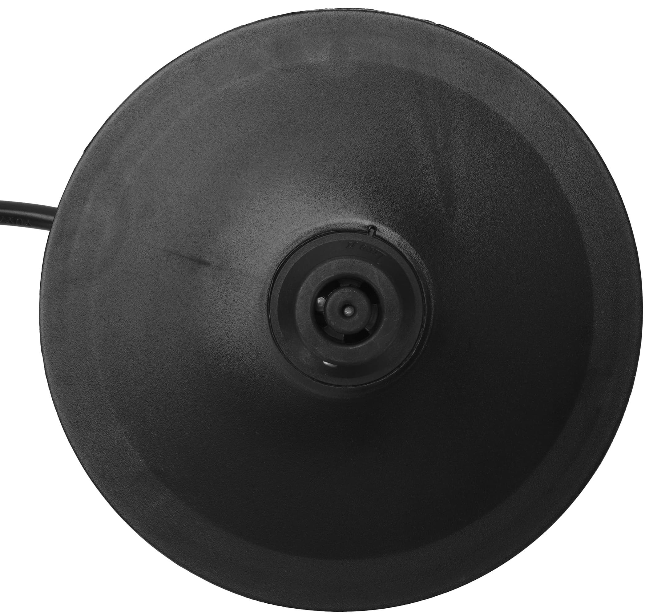 Низ корпуса чайника также выполнен из черного пластика, в центре — контактная группа, наклейка с базовой технической информацией.