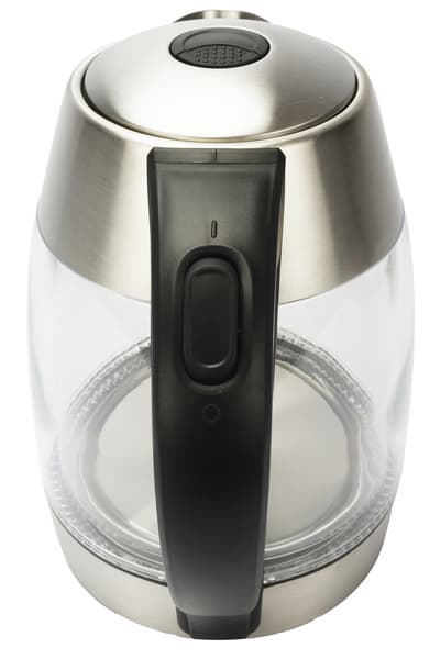 Из достоинств электрочайника отметим его безопасность для здоровья, ведь кипящая вода контактирует только со стеклом и металлом. Объем кипящей воды термоизолирован двойными стенками, исключая опасность ожогов о корпус. Автоотключение прибора происходит при попытке включить его без воды в колбе.
