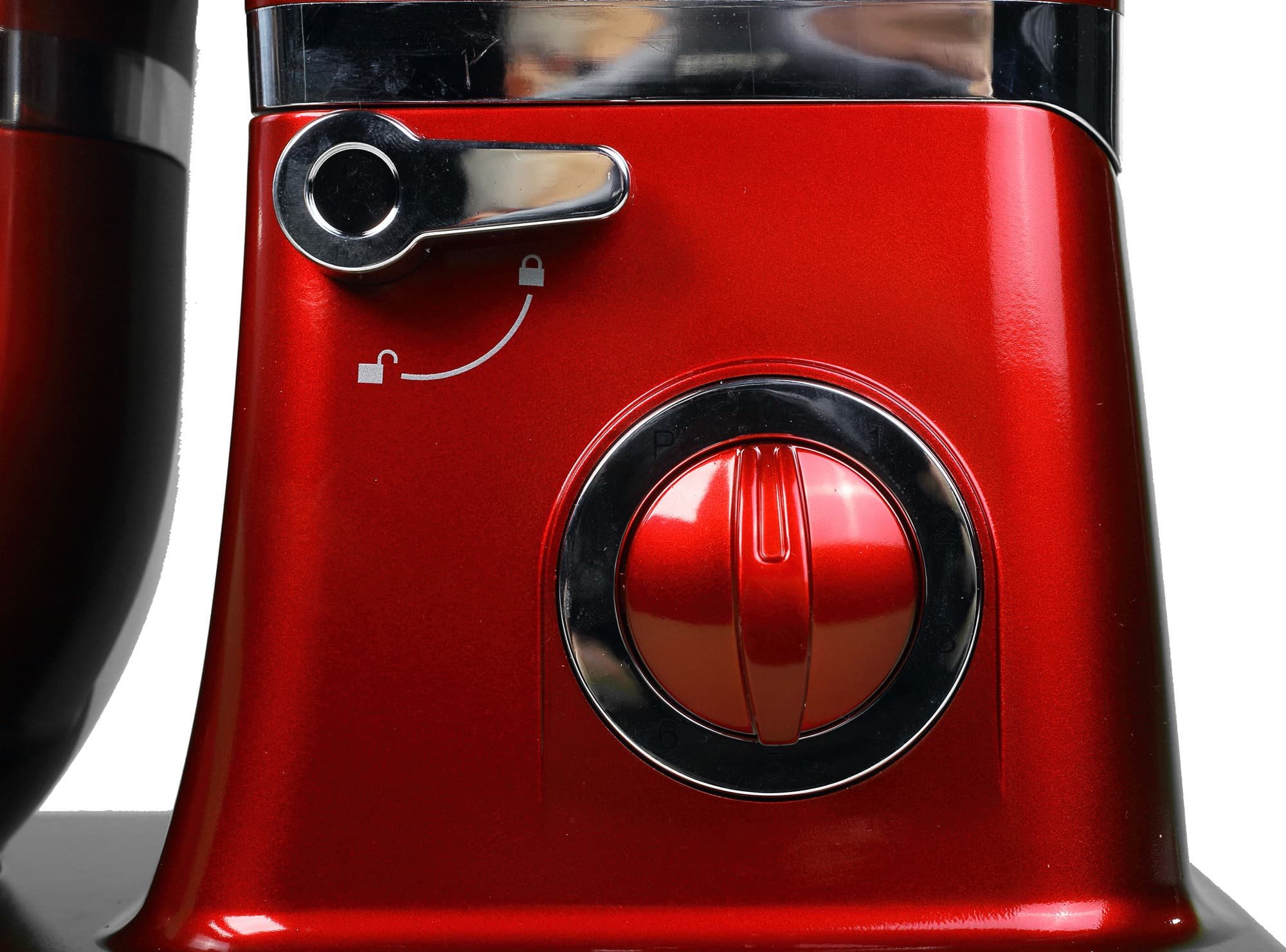 Миксер оснащен автоматической защитой, не позволяющей запустить прибор при поднятом кронштейне. Если нажать на рычаг во время работы — кронштейн поднимется, а работа мотора будет остановлена. Однако остановка не является штатной, согласно инструкции, предварительно нужно остановить работу мотора вручную (режим скорости = 0) и дождаться полной остановки двигателя.