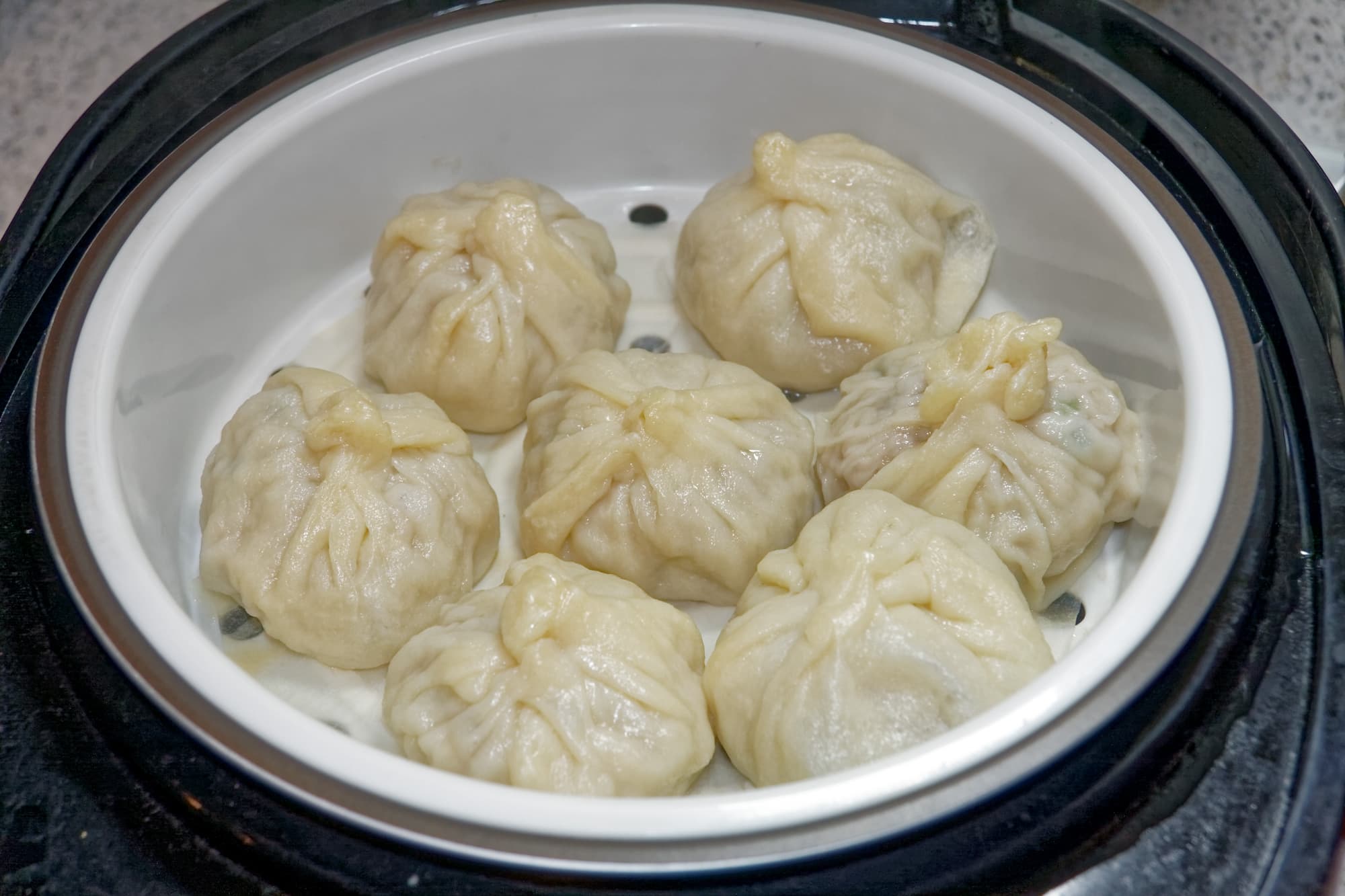 Готовятся такие пельмени с помощью пароварки, на сильном пару 10-15 минут. Осторожно — тесто получается довольно липкое, поэтому дно пароварки лучше выстлать бумагой для выпечки, предварительно проделав в ней несколько отверстий.