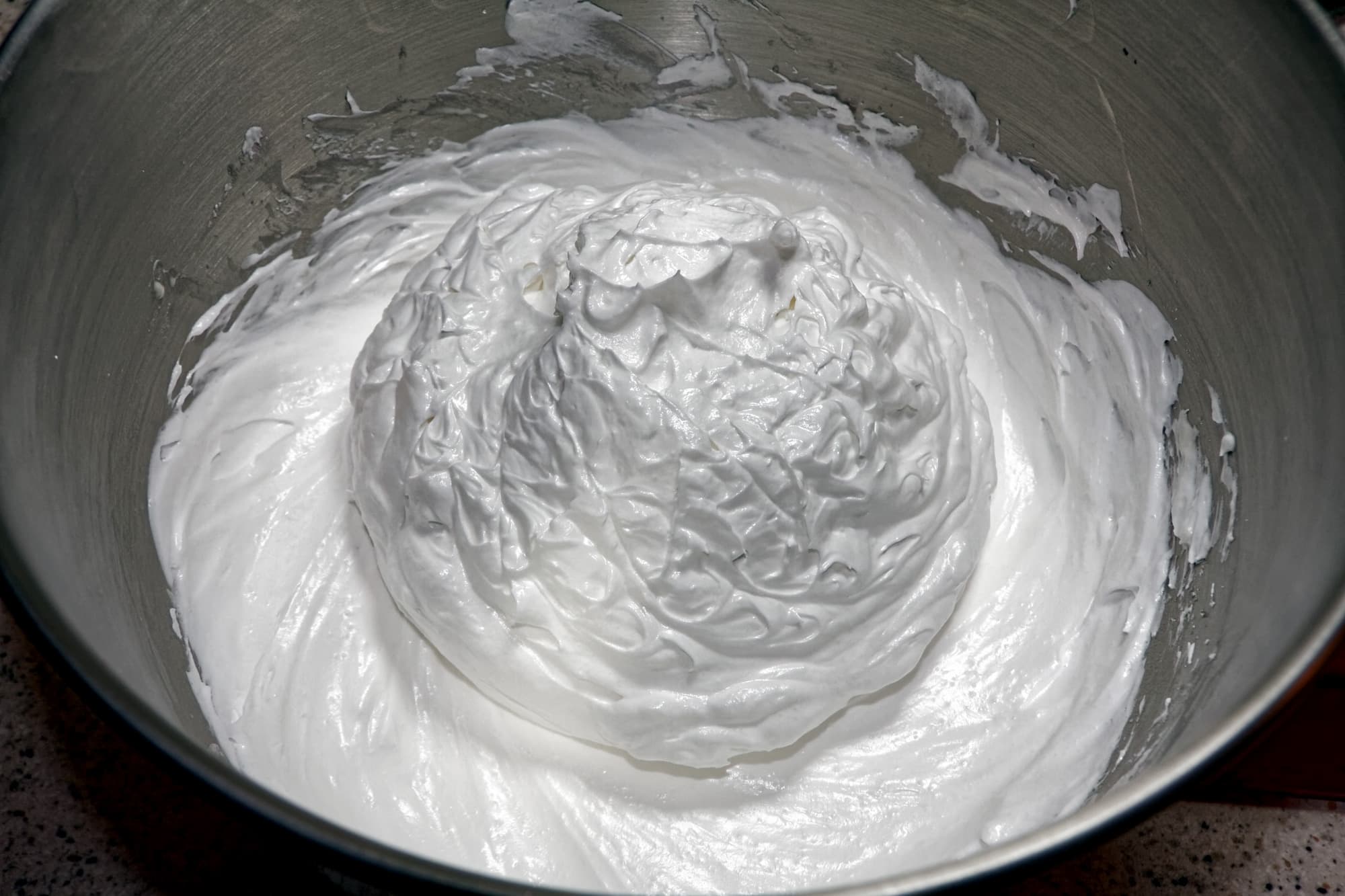 Белки взбиваются «до плотных пиков». На практике это означает, что при извлечении венчика за ним потянутся «пики» из взбитого белка, которые будут сохранять свою форму.