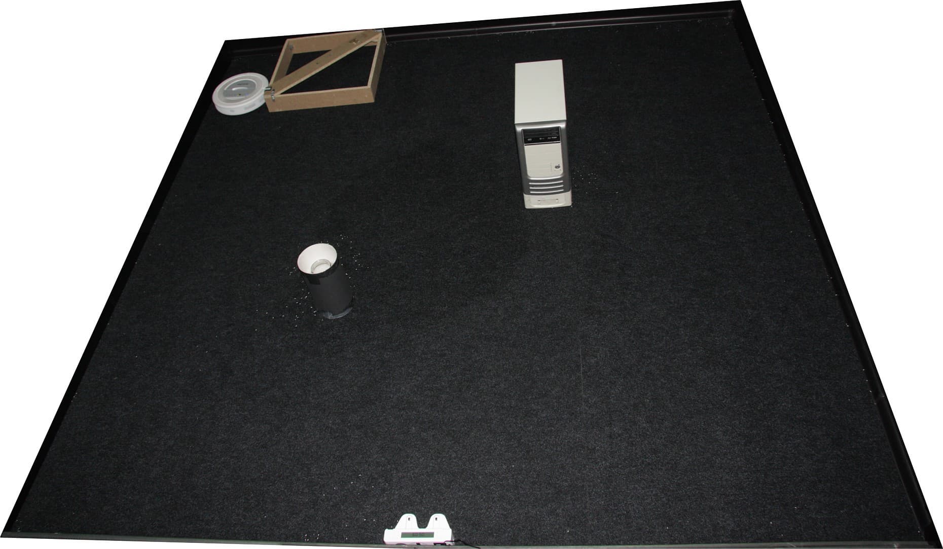 В бесконтактном режиме (по умолчанию включен) робот до препятствий не доезжает, что предохраняет мебель от царапин. В этом режиме качество уборки, в общем-то, остается высоким (см. данные в таблице в строках с указанием «без столкновений»), но вдоль стен и в тесных местах мусора остается все-таки больше. К примеру, так выглядит тестовое поле после 30 минут уборки в бесконтактном режиме: