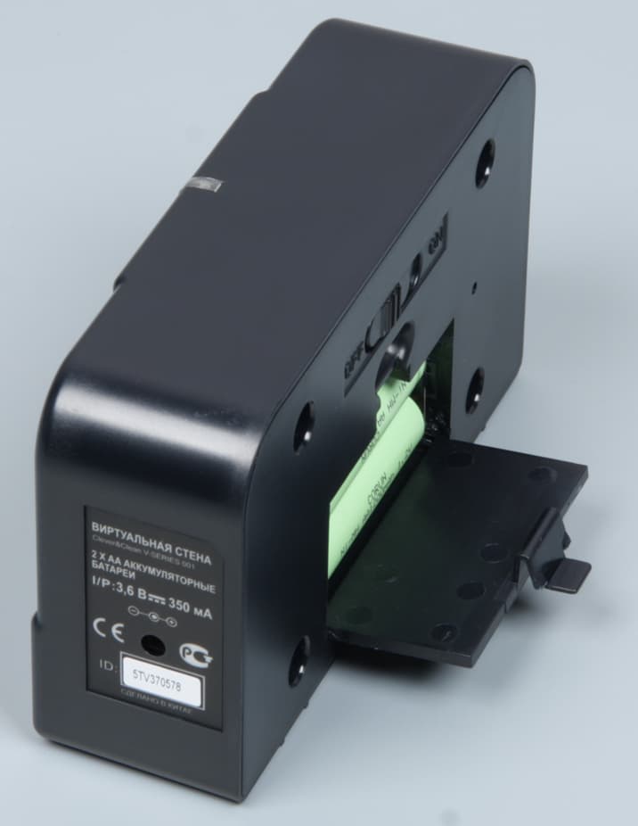 Длина преграды составляет как минимум два метра. Виртуальную стену нужно сначала включить вручную, передвинув механический переключатель на задней стенке. В дальнейшем она будет «просыпаться», когда робот начнет уборку, и «засыпать» после завершения уборки. Еще раз отметим, что в виртуальной стене изначально установлены аккумуляторы, и подзаряжать их можно, подключив виртуальную стену к базе.