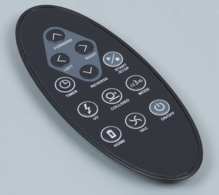 К пылесосу прилагается небольшой радиочастотный пульт ДУ овальной формы.