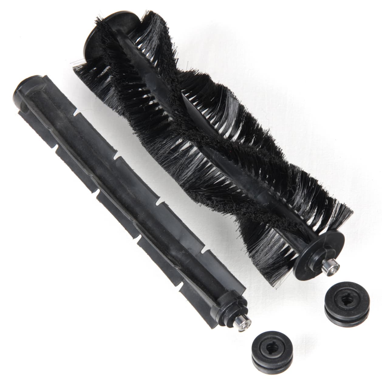 Отсек, в котором находятся основные щетки, закреплен на шарнире, поэтому с ходом примерно в 6-7 мм он следует рельефу пола. Щетка-скребок выступает за боковые направляющие примерно на 1-2 мм, а щетина второй щетки выступает на 4 мм. В итоге достигается хорошая эффективность работы щеток на неровных поверхностях с практически любым типом покрытия. Для очистки щетки вынимаются из отсека.