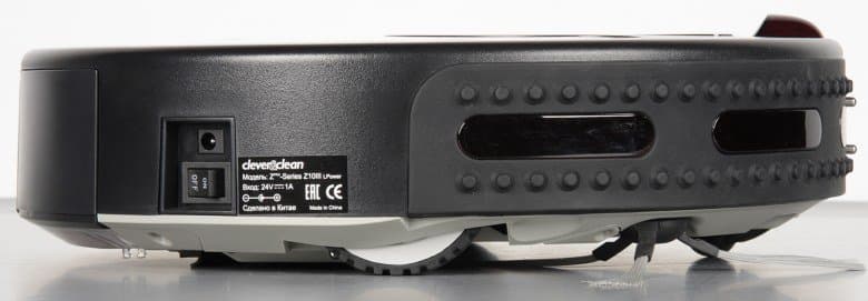 На правом боку находится разъем питания для прямой зарядки аккумулятора и клавиша, отключающая батарею от цепей робота.