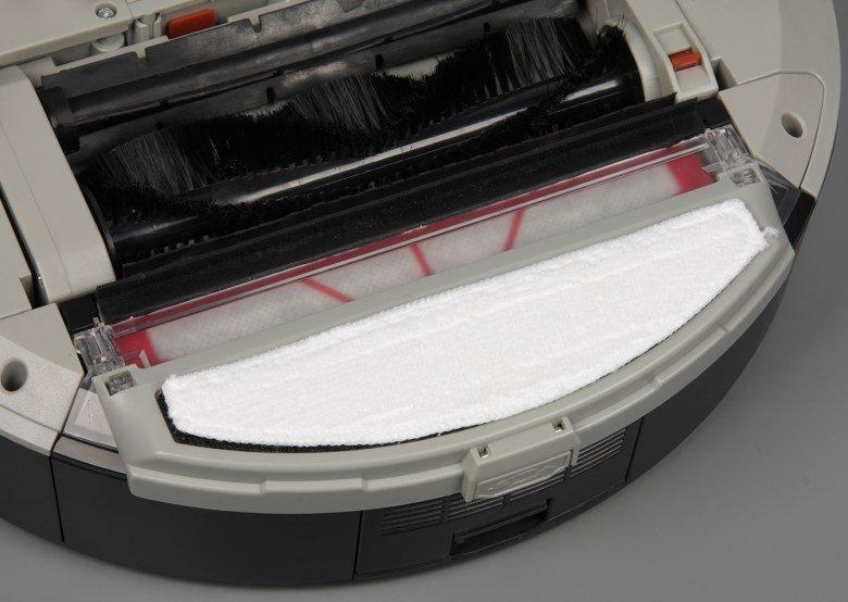 В качестве завершающего этапа робот может выполнять протирку гладких полов, для чего на дно пылесборника нужно закрепить поддон, а на него на липучке небольшую махровую салфетку.