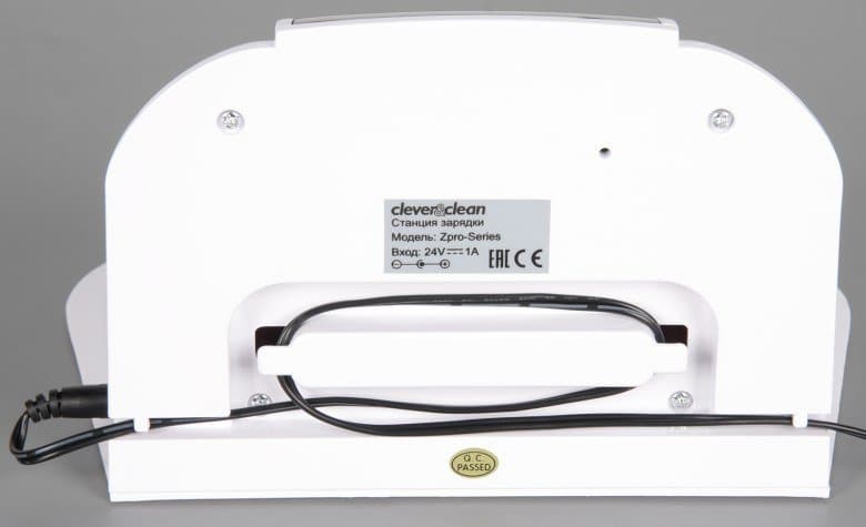 База, на которой пылесос подзаряжается, имеет внешний блок питания (длина кабеля — 185 см), который также можно использовать для зарядки робота, минуя базу, если по какой-то причине она недоступна.
