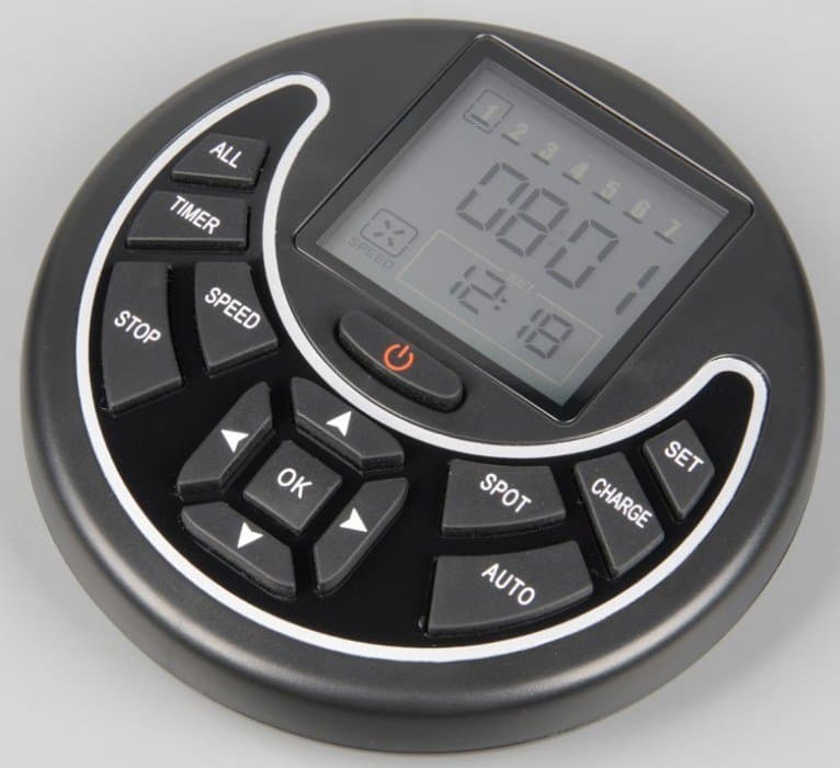 На пульте есть кнопки из резиноподобного материала с читаемыми контрастными обозначениями и ЖК-дисплей, работающий на отражение. Дисплей достаточно информативный — выводится текущее время и день недели, время автоматического запуска и выбранные дни недели, режим работы, а при передаче сигнала мигает значок антенны.