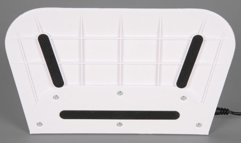 Основание базы относительно большое, на него снизу наклеены три противоскользящие резиновые накладки.