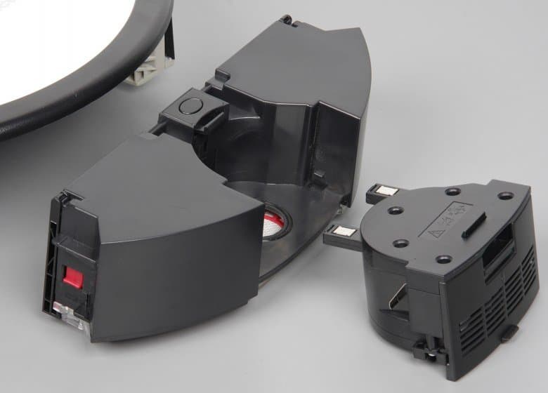 Воздушный вентилятор встроен в пылесборник, но модуль с вентилятором легко отсоединяется, поэтому сам корпус пылесборника можно мыть под водой.