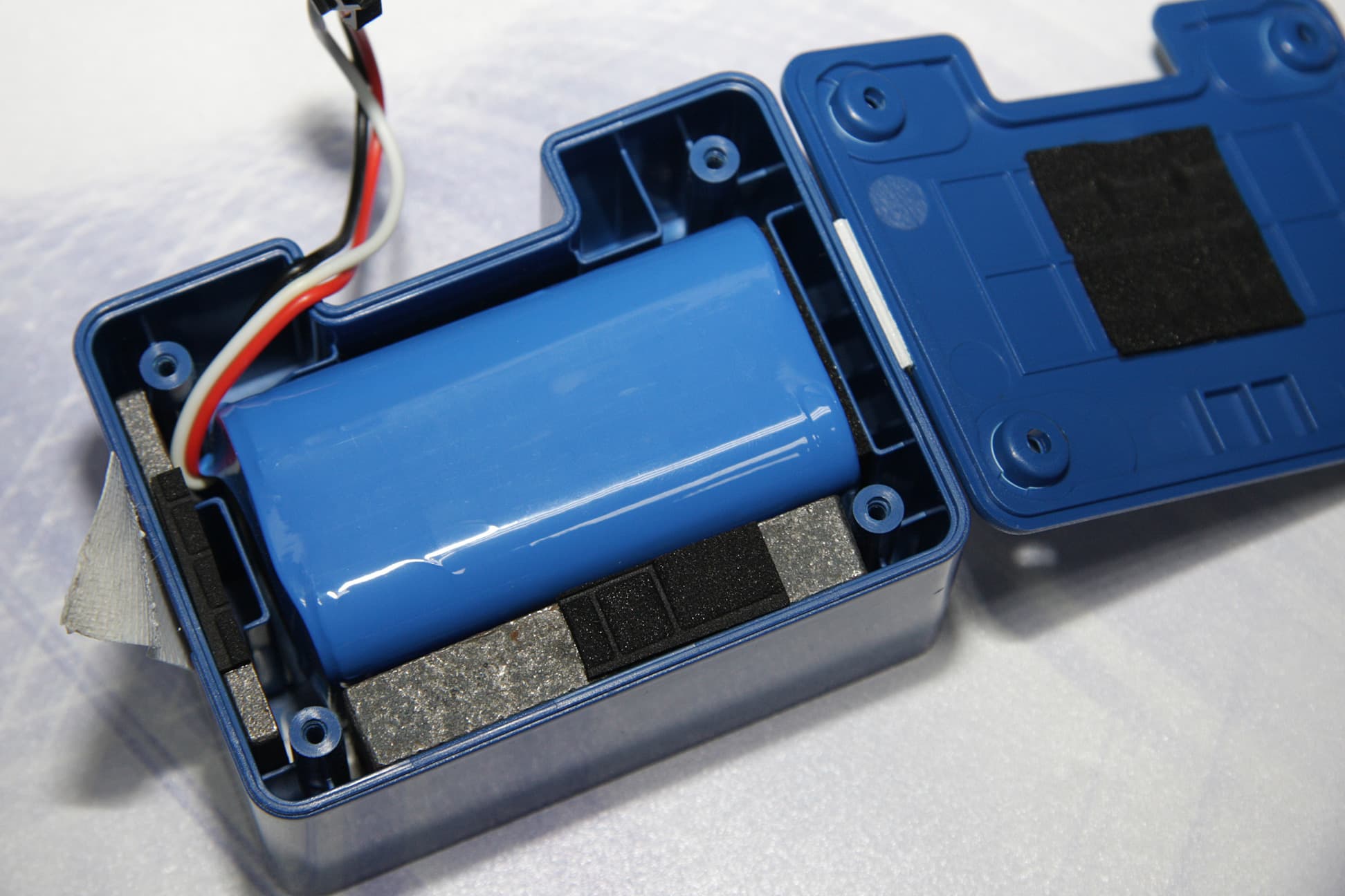 Открыв крышку корпуса аккумулятора, можно определить, что используется сборка из четырех цилиндрических элементов типоразмера 18650. Четыре таких элемента весят гораздо меньше, чем 12 элементов типоразмера SC, использовавшиеся в никель-металлогидридной аккумуляторной батарее. Для сохранения баланса новая батарея оснащена двумя утяжелителями, изготовленными из железа.