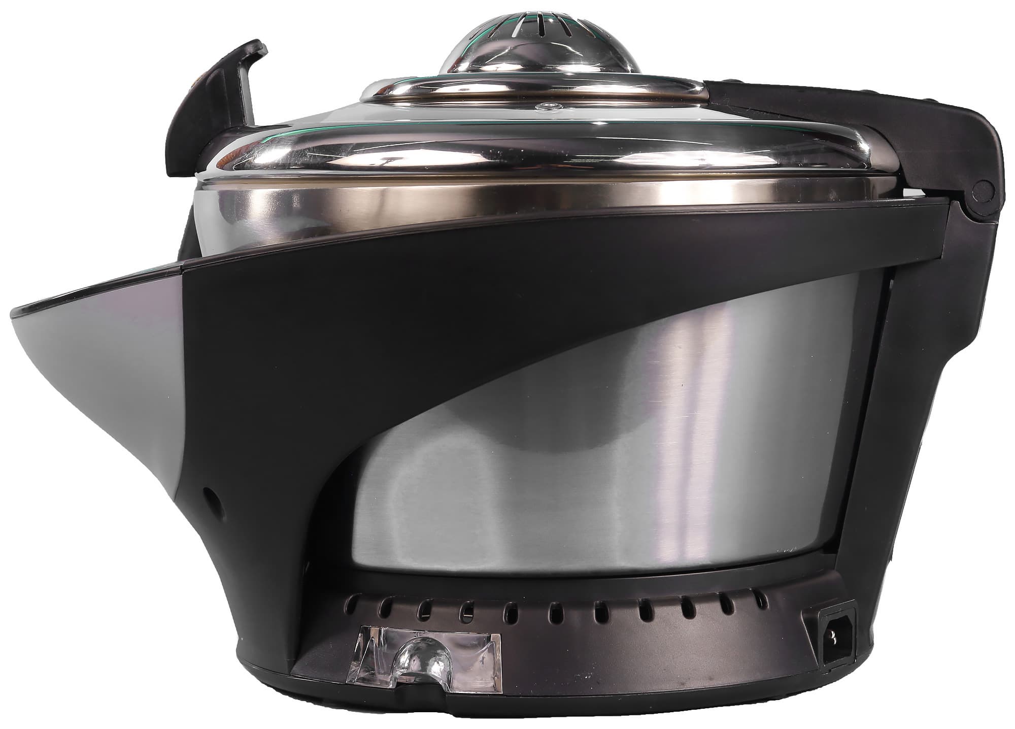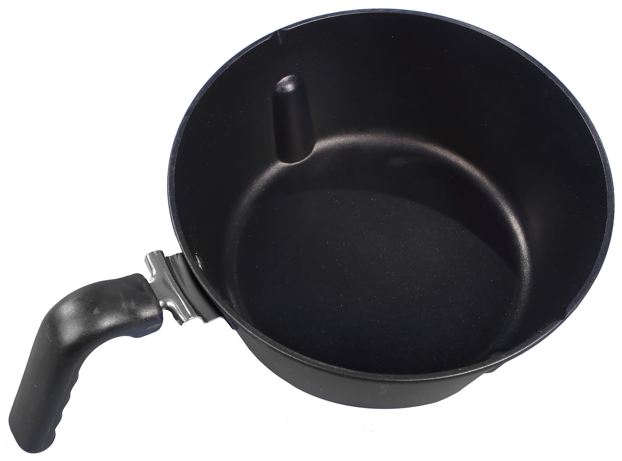 Кастрюля для жарки/варки с гладким дном снабжена съемной ручкой. Аксессуар полностью повторят форму основной кастрюли с лопастью. С обратной стороны дна имеются три небольших упора для размещения внутри прибора над нагревательным элементом.