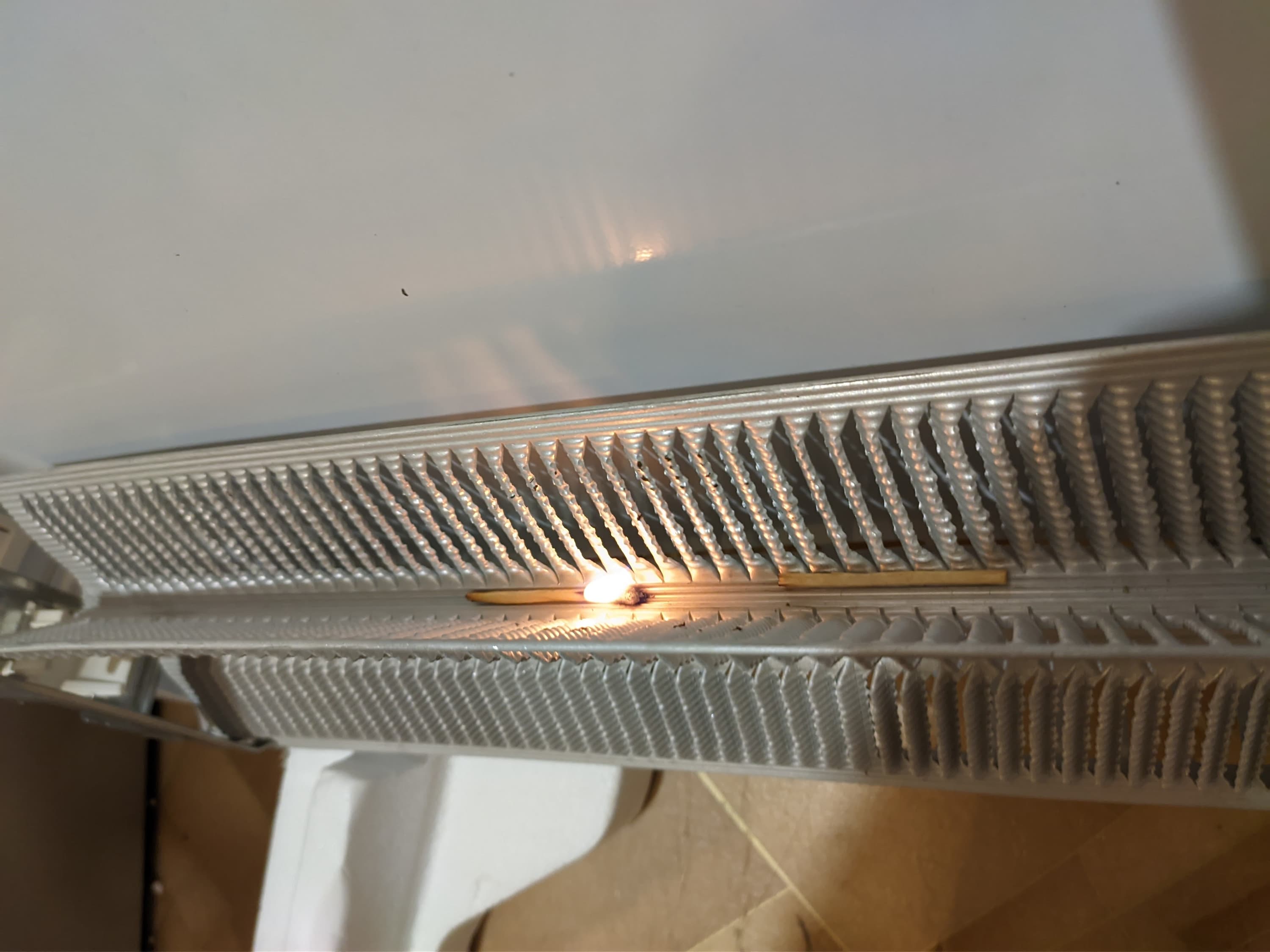 Спички — детям не игрушка. Всем известная банальность. Что случится, если спичка попадет внутрь обогревателя? Для этого теста мы взяли две спички — одну целую, а вторую со срезанной головкой. Разместили их на тэне и начали ждать.