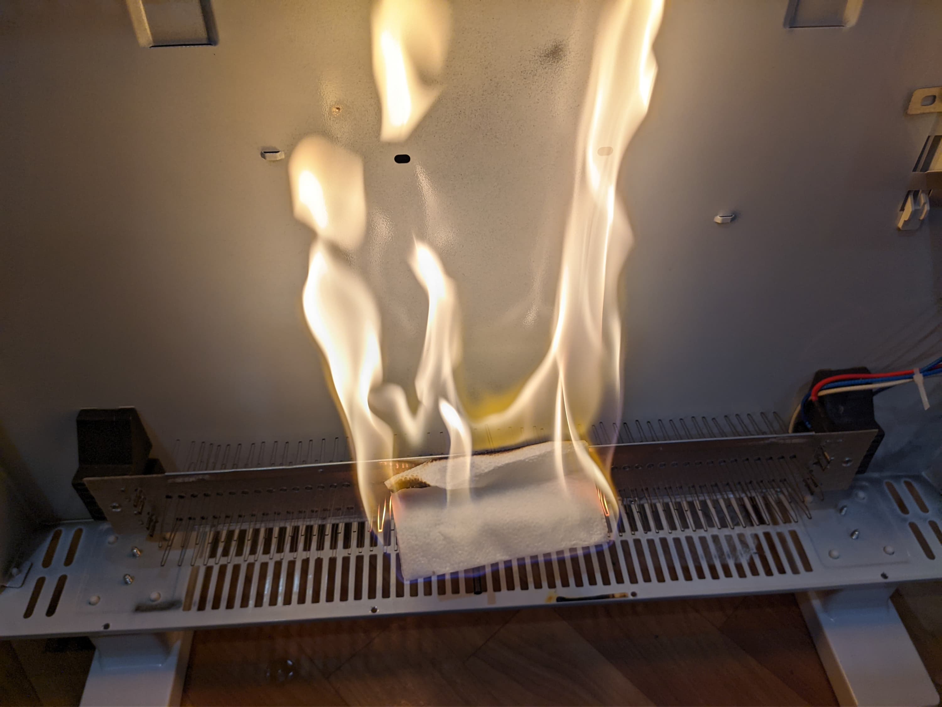 Обогреватель с тэном типа стич поджег бумагу практически мгновенно.